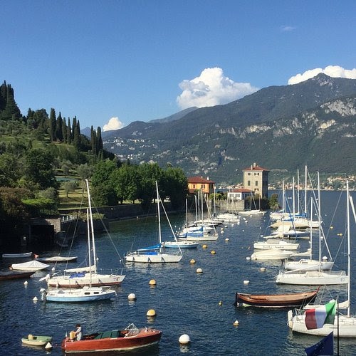 Un altro elemento distintivo del panorama è l’elegante profilo di Villa Serbelloni (Grand Hotel), che si staglia in modo quasi protettivo sull’intero borgo.