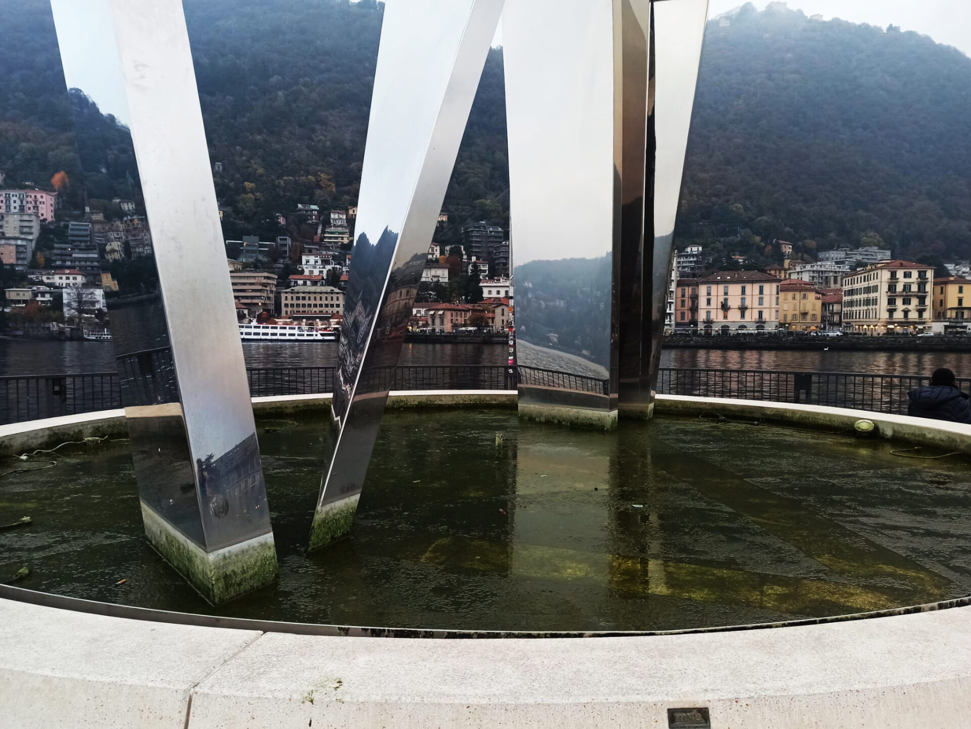 E’ oggettivamente ributtante lo stato di disgrazia in cui versa la vasca d’acqua su cui poggia Life Electric opera di Daniel Libeskin donata alla città da Amici di Como e Consorzio Como Turisticae inaugurata il 2 ottobre 2015.