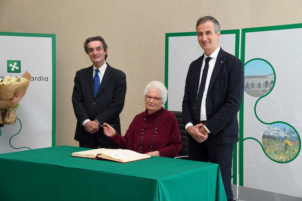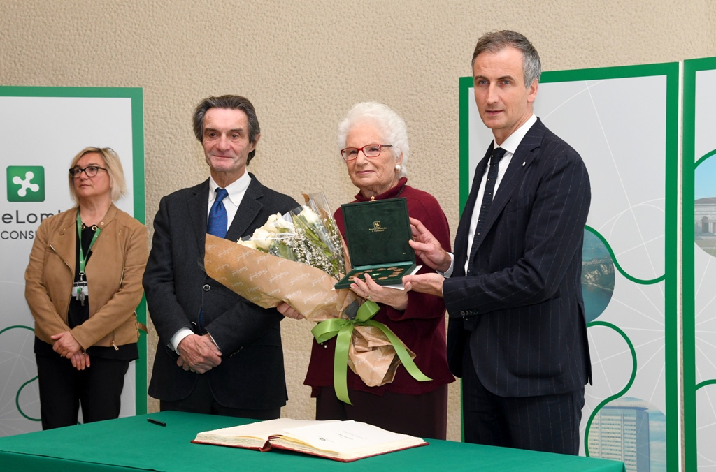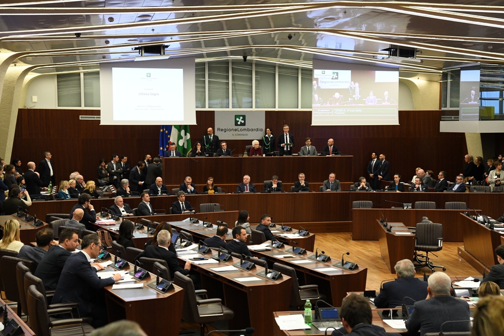 La senatrice Segre è entrata in Aula accompagnata dal Presidente del Consiglio Alessandro Fermi e dal Presidente della Regione Attilio Fontana, accolta dal lungo applauso dei Consiglieri regionali in piedi nell’Aula del Pirellone.
