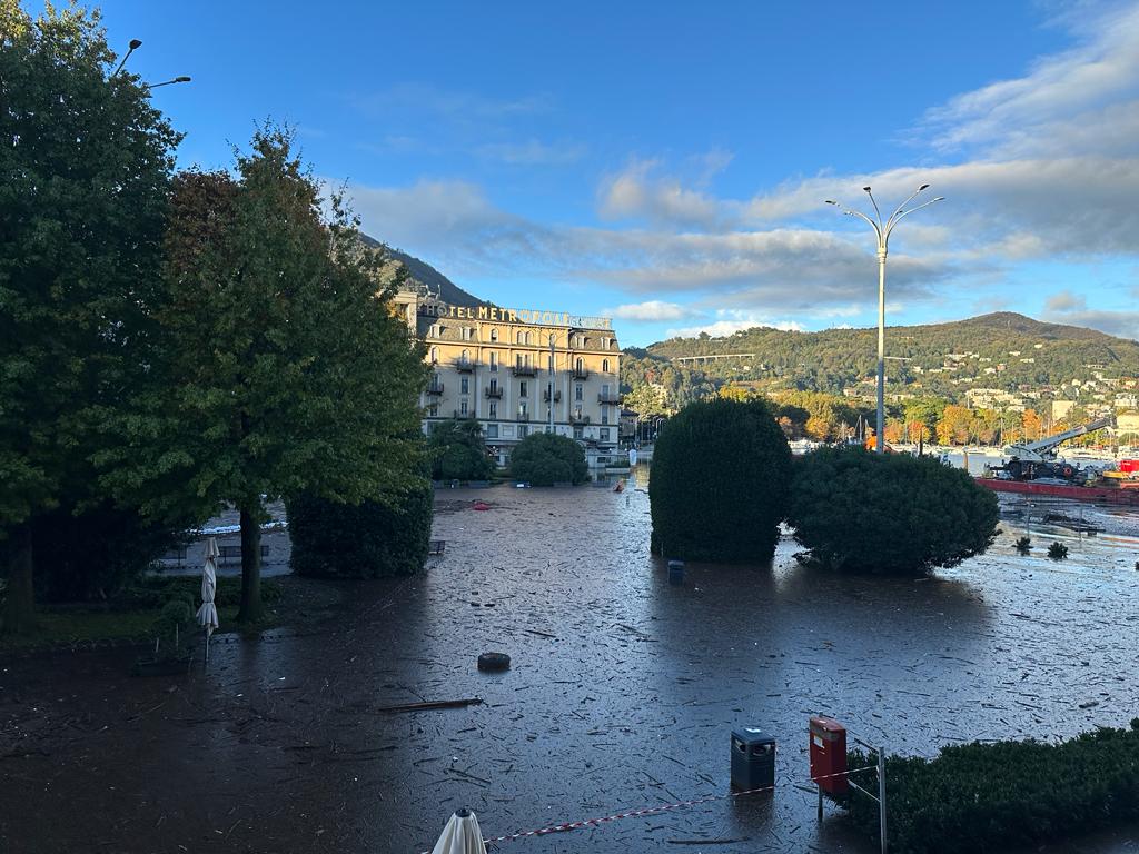 Come previsto dagli enti preposti al controllo la pioggia caduta ieri su Como e provincia non ha peggiorato la situazione del lago che continua lentamente a scendere. Oggi alle 13 l’altezza sullo zero idrometrico era di 158.6 centimetri l’afflusso di 509.7 metri cubi al secondo, il deflusso di 636.3 metri cubi al secondo. Insomma, piano piano, il Lario si svuota. Ci vuole pazienza per un ritorno alla normalità nel capoluogo, l’acqua in piazza Cavour e sul lungolago rimarrà ancora qualche giorno. Le previsioni del tempo non annunciano imminenti piogge, al momento sono indicate per il tardo pomeriggio di giovedì prossimo, 9 novembre. Ecco la situazione di piazza Cavour questa mattina: