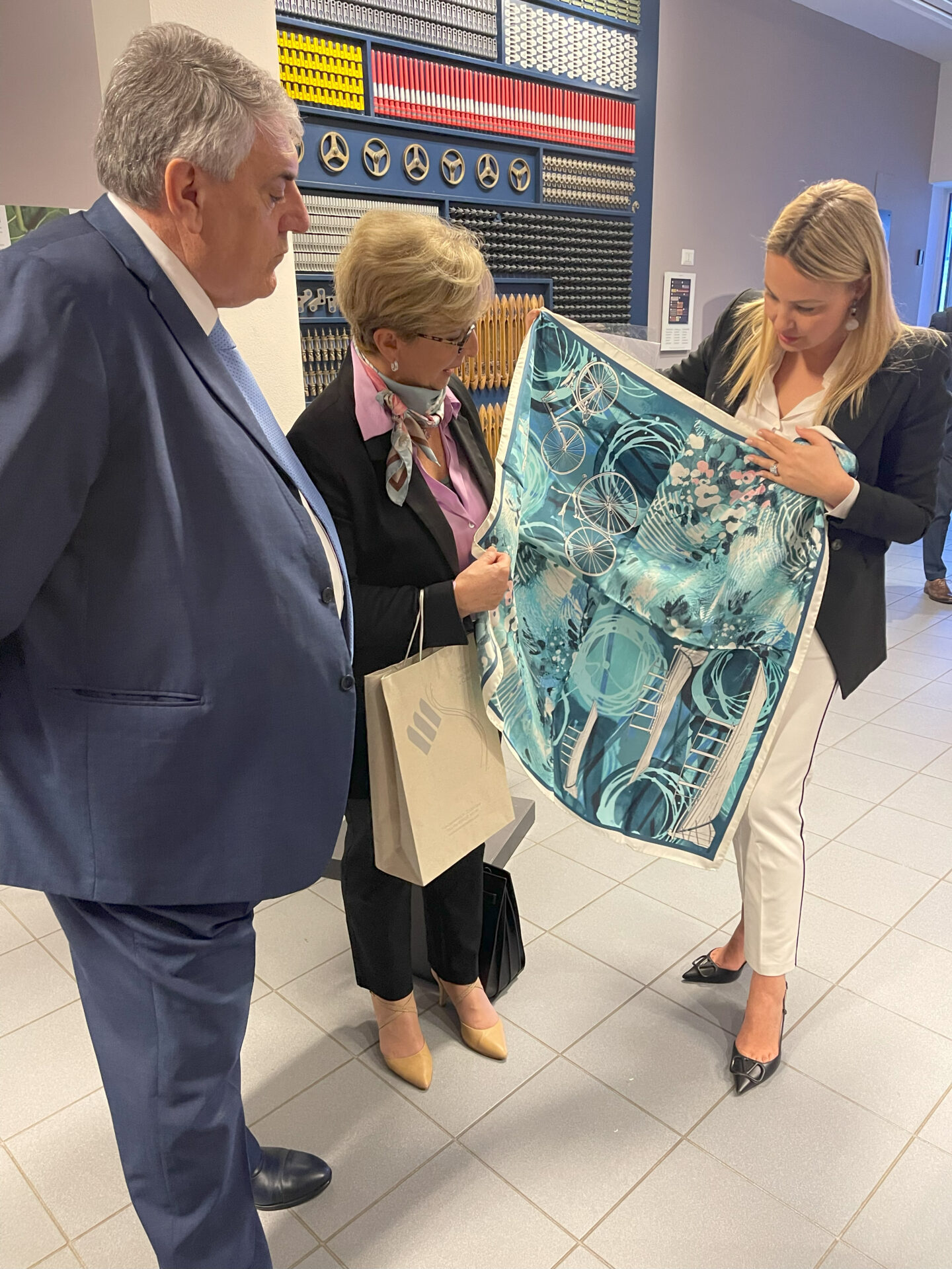 L’assessore Tironi, accompagnata dal Presidente Bongiasca, ha concluso la mattinata comasca visitando i laboratori del Setificio con il Preside Roberto Peverelli e il Museo della Seta con la Presidente Giovanna Baglio.