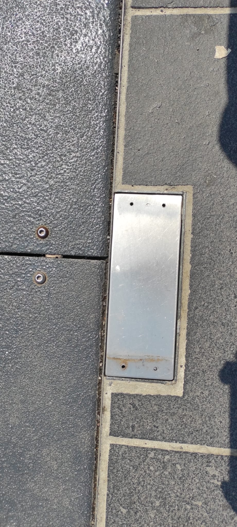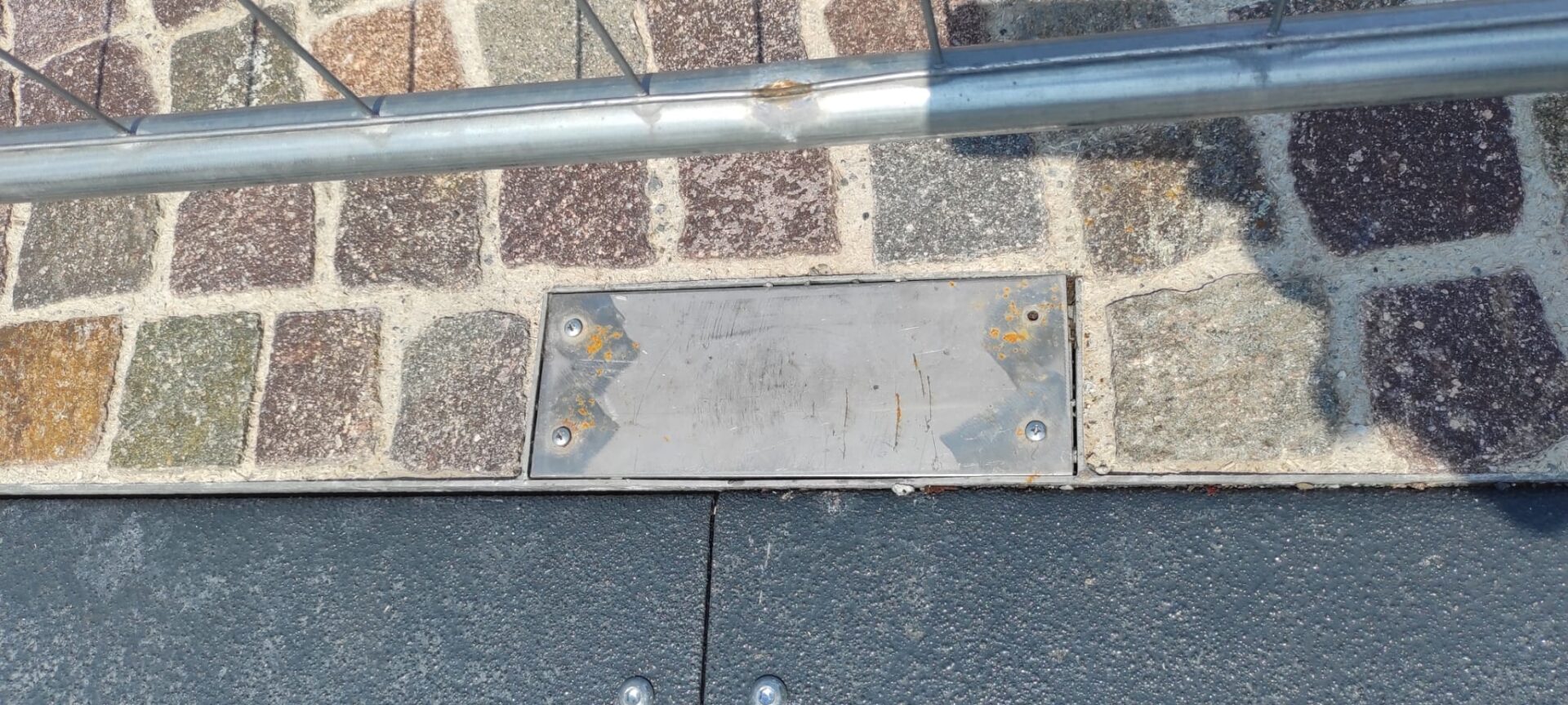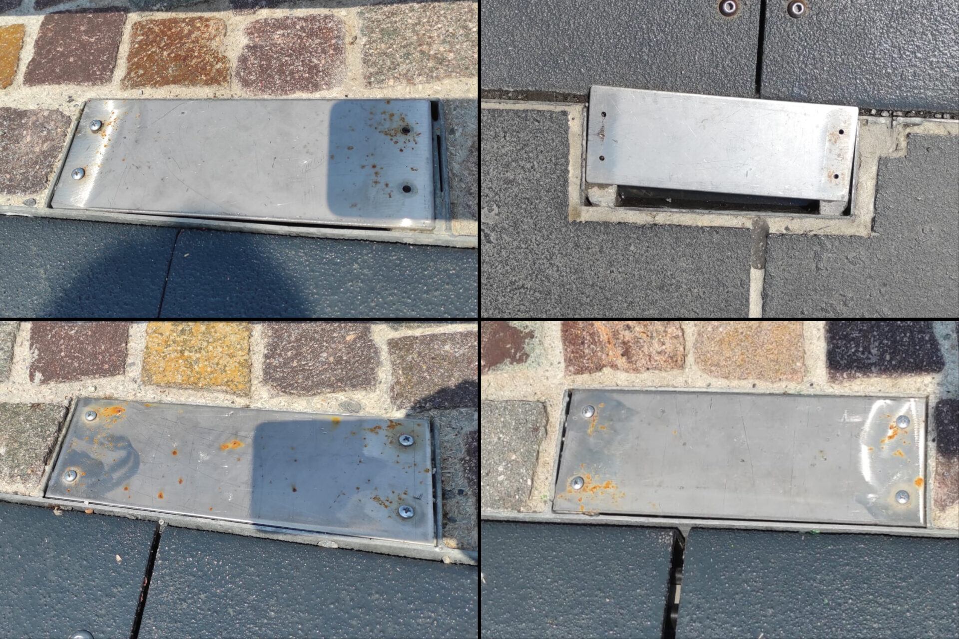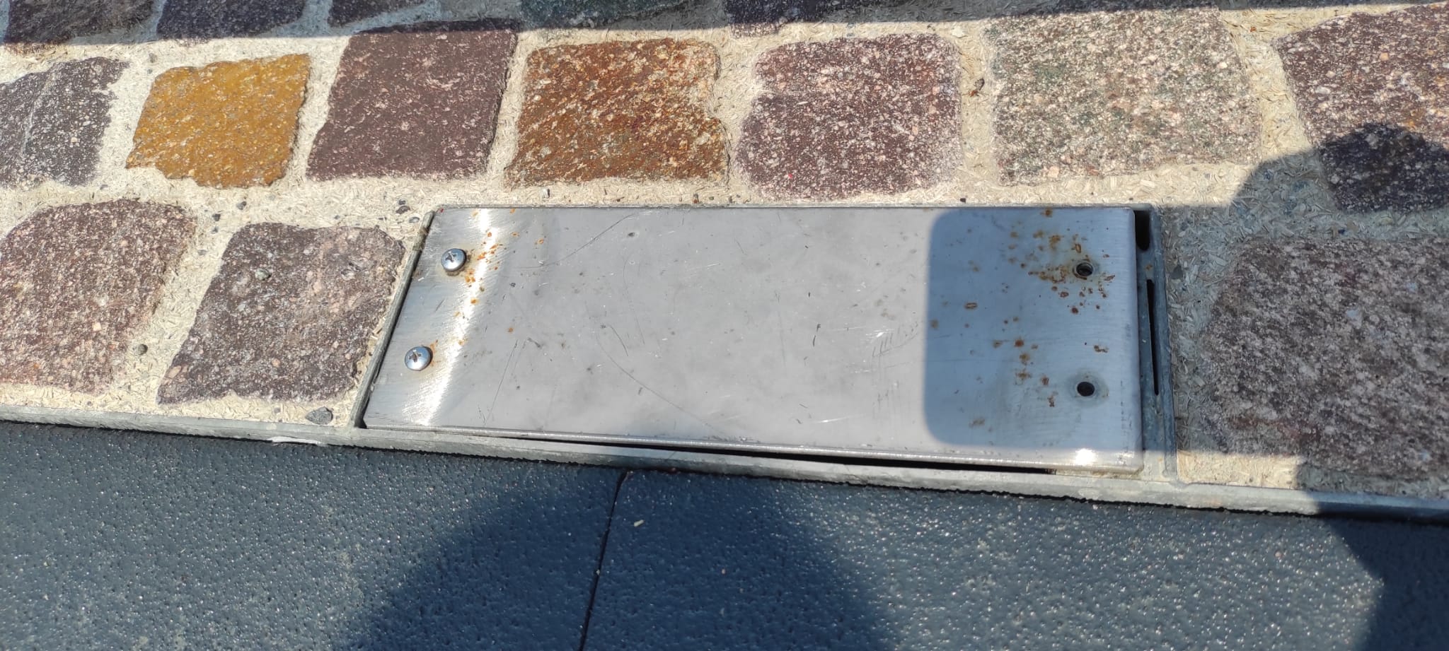 Soluzione quantomeno curiosa per un coperchio che deve stare anni all’aperto, sembrano placche da appartamento…