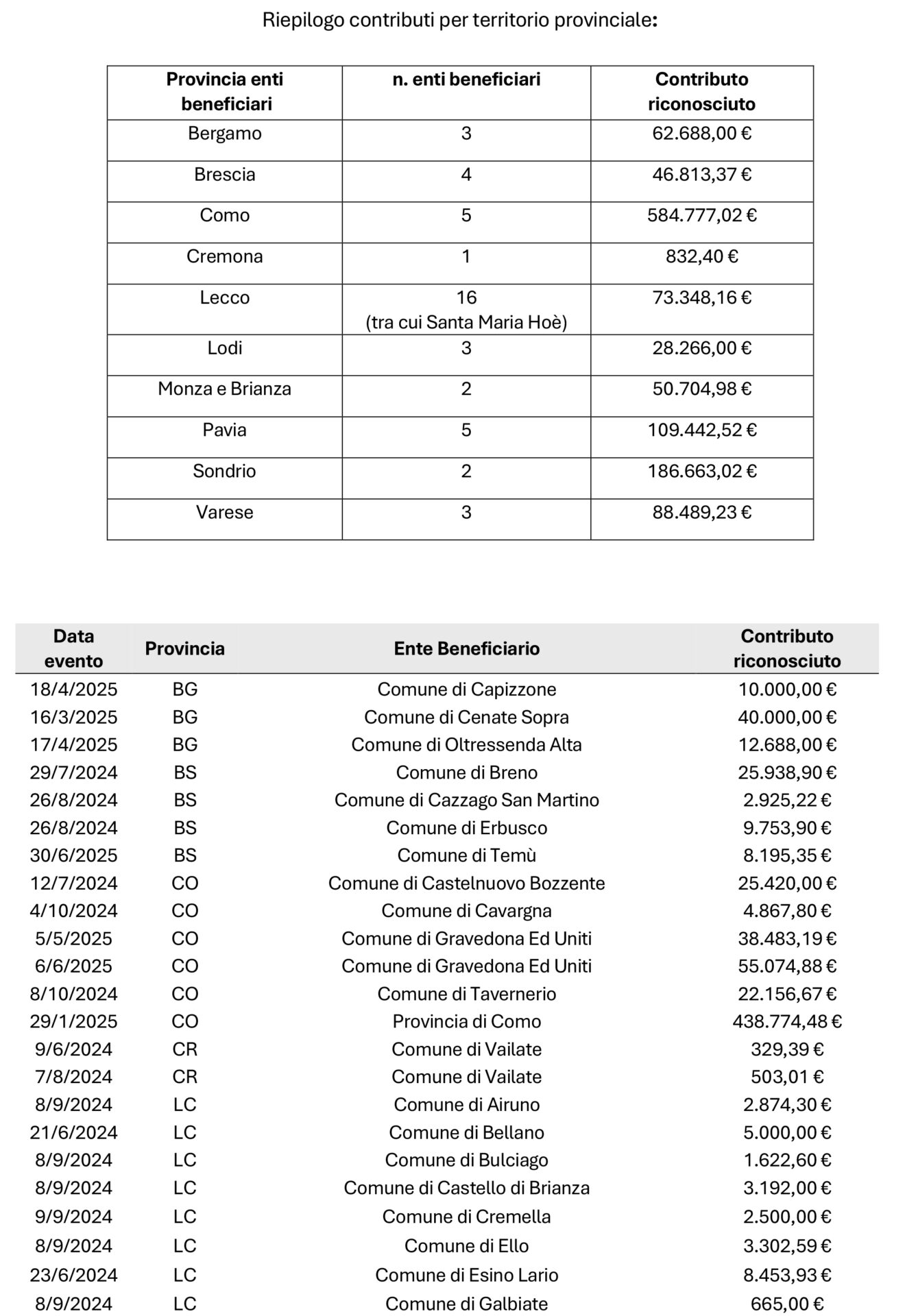 Regione Lombardia ha varato uno stanziamento di 1,2 milioni di euro per ristori a favore di Comuni e Province che hanno sostenuto spese di prima e post emergenza in occasione degli eventi calamitosi naturali negli anni 2024 e 2025 (fino al 30 giugno). Lo prevede una delibera di Giunta, approvata su proposta dell’assessore regionale alla Sicurezza e Protezione civile, Romano La Russa, di concerto con l’assessore agli Enti locali, Montagna, Risorse energetiche, Utilizzo risorsa idrica, Massimo Sertori.