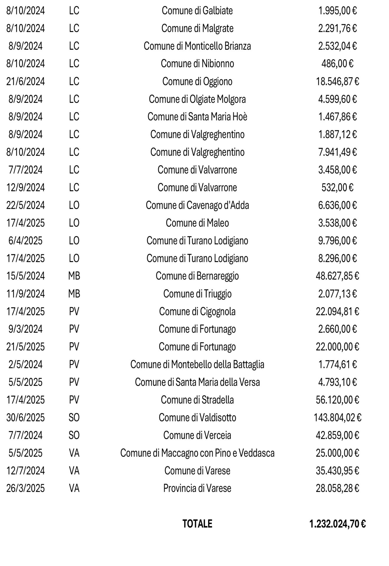 Qui il dettaglio per provincia: