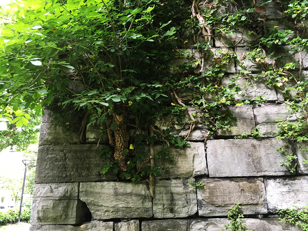 Ringraziato Giò Ratti (che, per inciso, chiede, anzi, invoca un’eradicazione almeno del caprifoglio che, dalle mura di via Sauro, si è lanciato a invadere la chioma di uno splendido faggio pendulo), per avermi dato il punto di vista “botanico”. Potevo non andare alla ricerca anche del parere di qualcuno esperto in analisi dei materiali lapidei? E così ho chiesto a Laura Rampazzi, docente e ricercatrice dell’Università dell’Insubria, il suo parere su questo argomento.