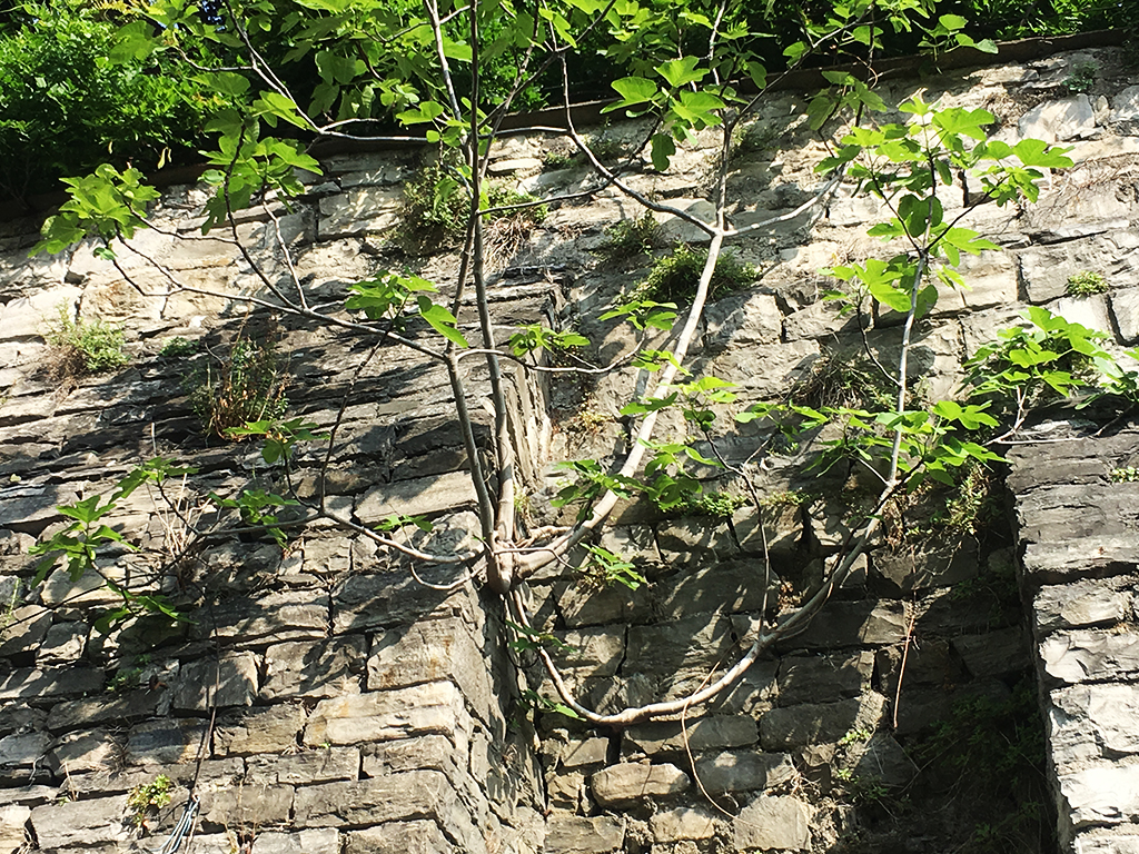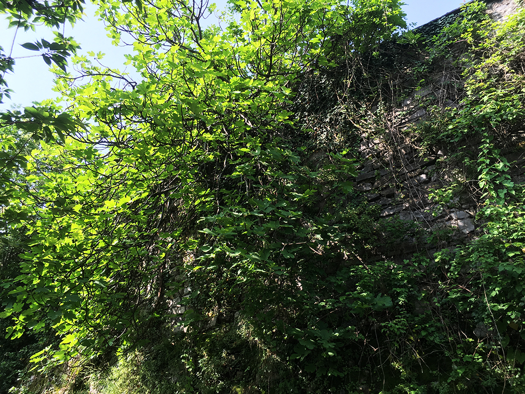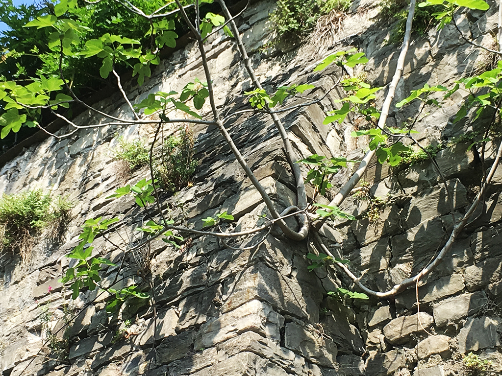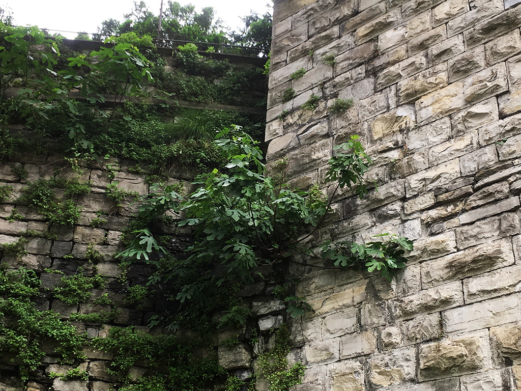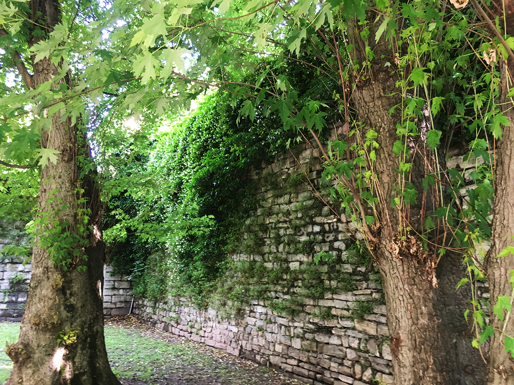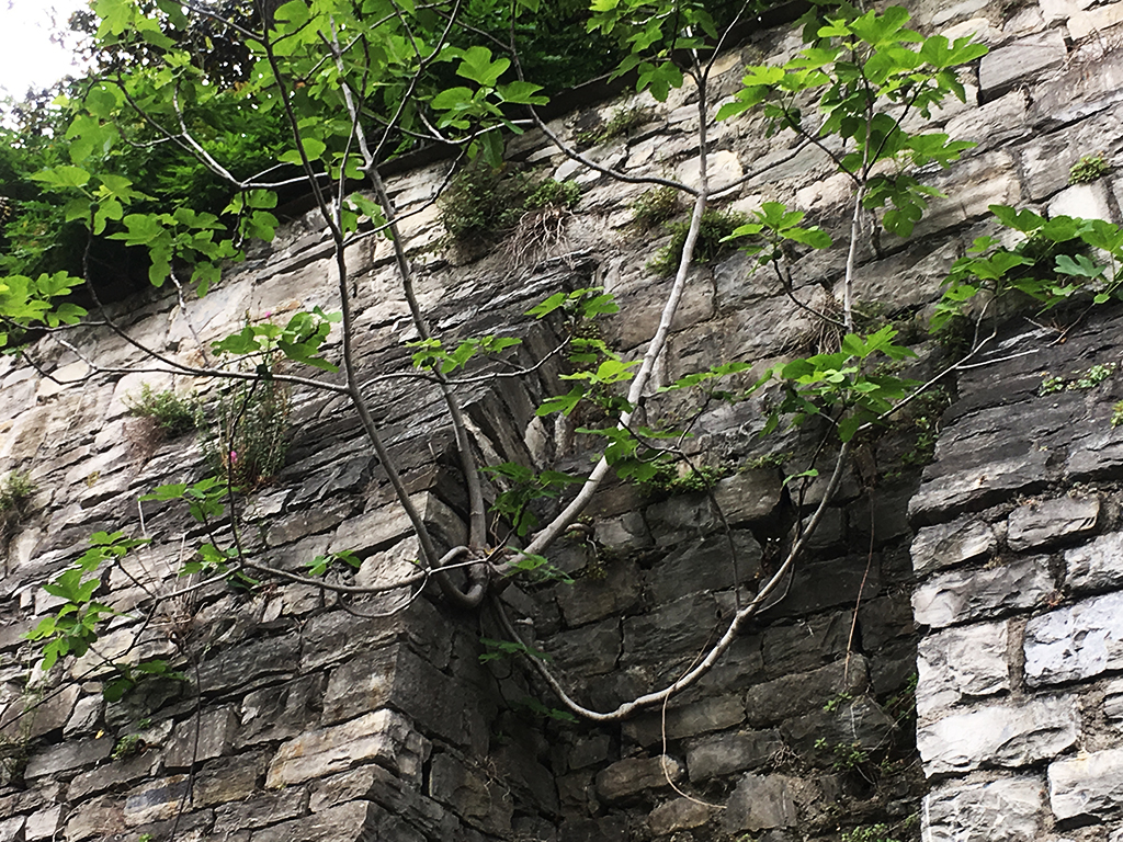 “Le ricadenti provenienti dai giardini come il caprifoglio, il glicine o le rose non provocano alcun danno perché non hanno radici aeree e, tutto sommato, sono molto decorative – spiega Ratti – ma alberi con una chioma di queste dimensioni (siamo in via Nazario Sauro Ndr) possono sicuramente agire sulla muratura, sia a causa delle radici che del loro stesso peso, o per la tensione dovuta ai movimenti della pianta in caso di vento. Occorrerebbe capire quanto sono resistenti le mura ma qui, in alcuni punti, si vedono già delle pietre mosse in corrispondenza delle radici che andrebbero tenute d’occhio, a mio parere. L’ombra delle piante poi crea umidità su cui nascono nuove piante e le mura poi spariscono, come sta avvenendo in questo tratto”.