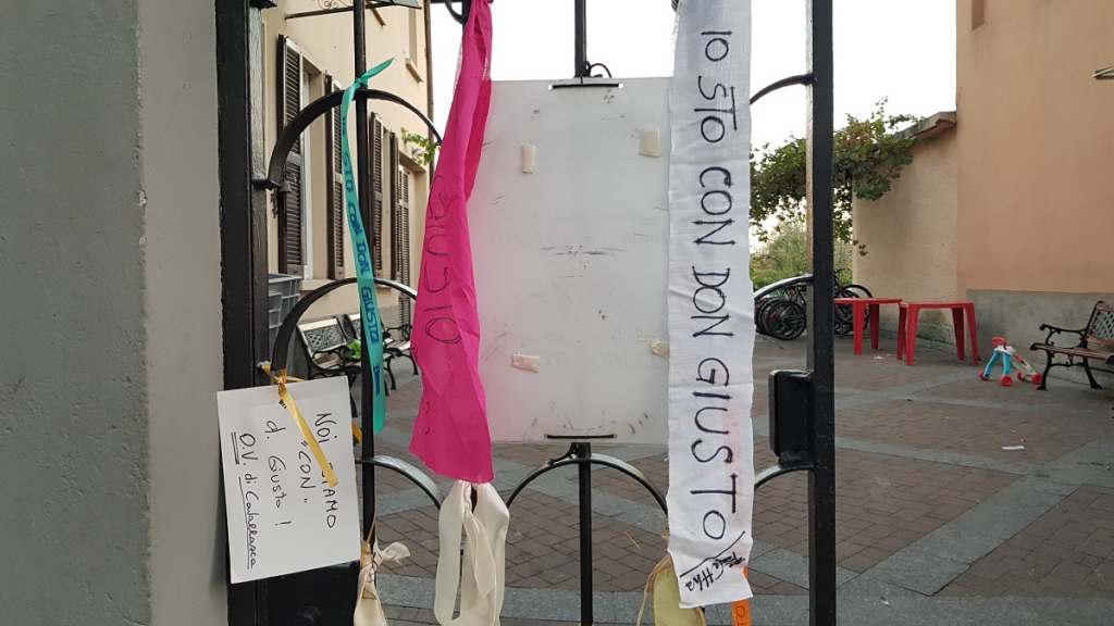 Semplice l’invito: attaccare un nastrino colorato sul cancello della parrocchia di Rebbio in segno di solidarietà a don Giusto della Valle, nel mirino dell’estrema destra. E, sin dalle prime ore, la piccola processione ha preso piede.