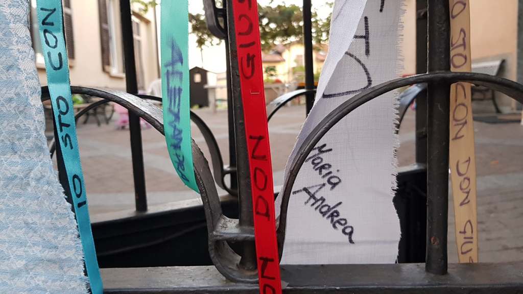 Una ventina, almeno, i lembi di tessuto che penzolavano dal cancello attorno alle 19. Ma c’è da scommettere che la piccola mobilitazione di quartiere (e oltre) non sia finita.