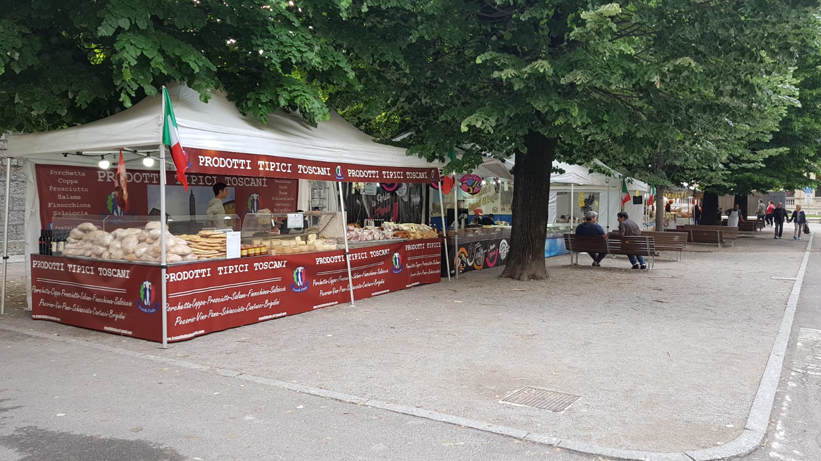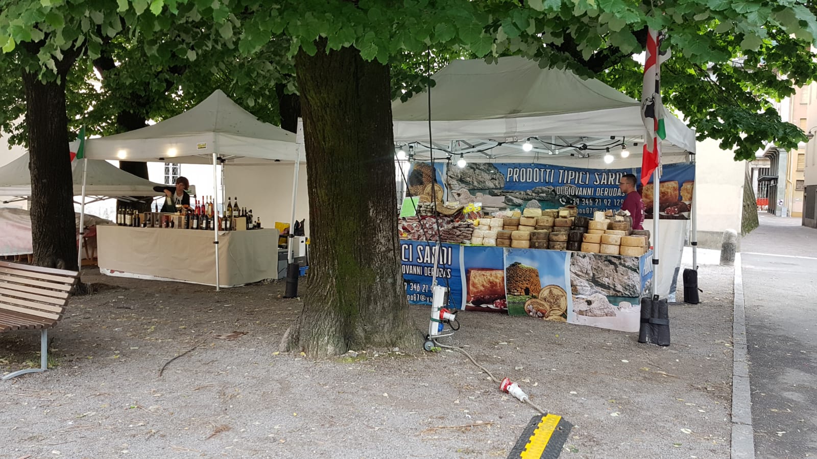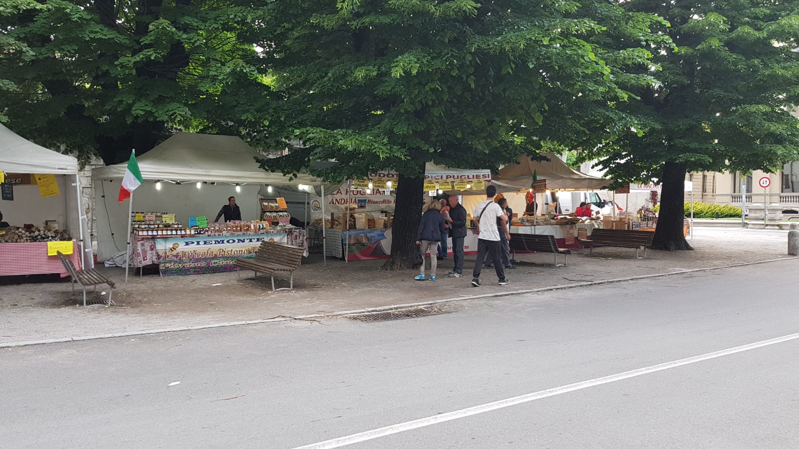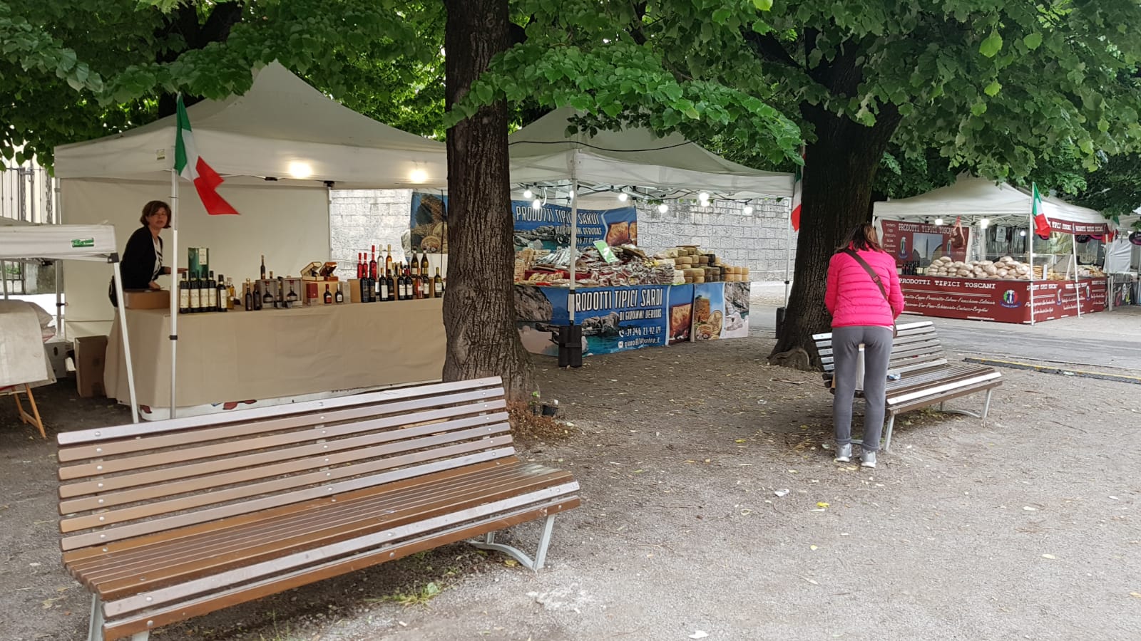 Il racconto è identico di bancarella in bancarella, tra porchetta e capocollo un lieve venticello solleva qualche foglia secca: e la metafora desertica è compiuta. Dieci gazebo con prodotti tipici da mezza Italia, è una piccola enclave dei più grandi mercatini che fino a poco tempo fa aprivano i battenti a due passi da qui: in piazza Cavour.