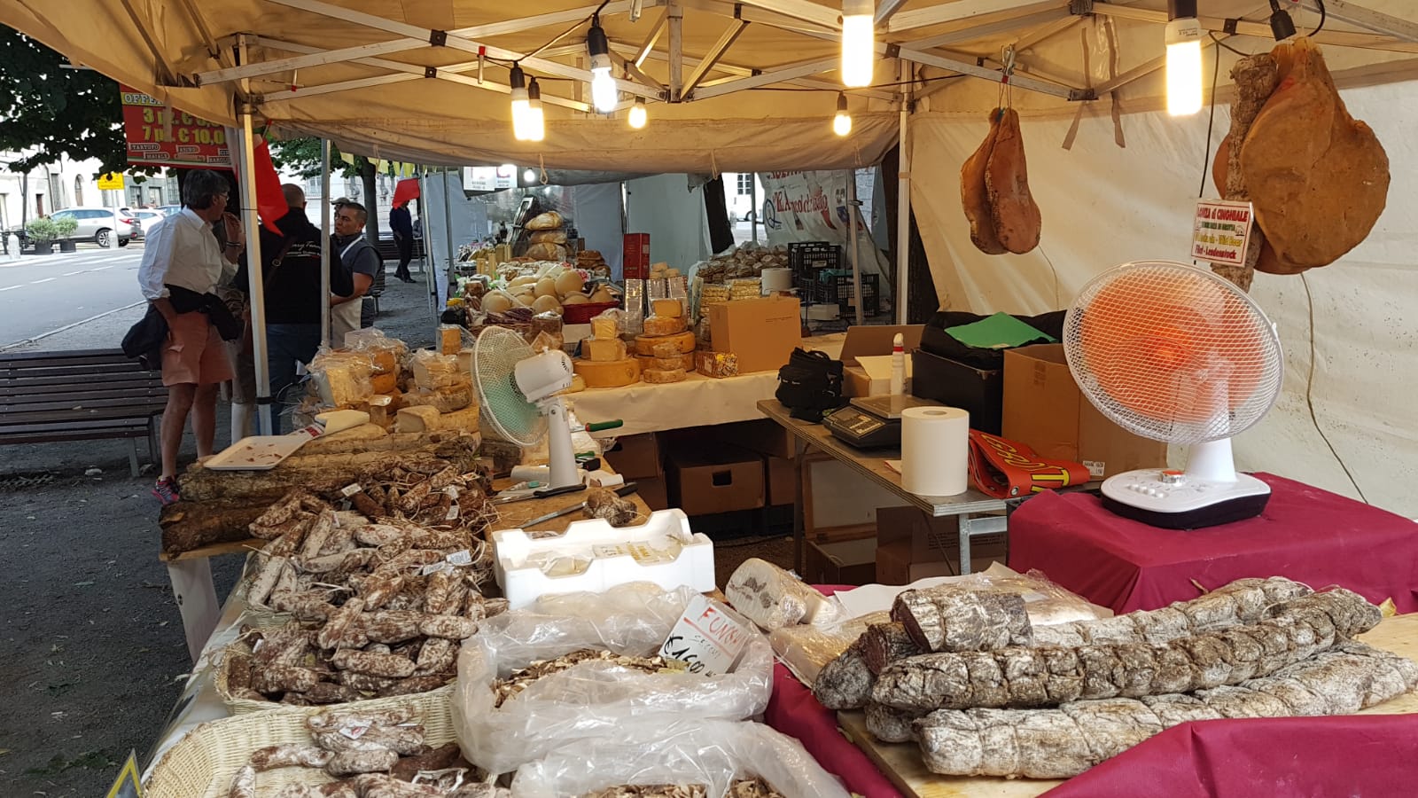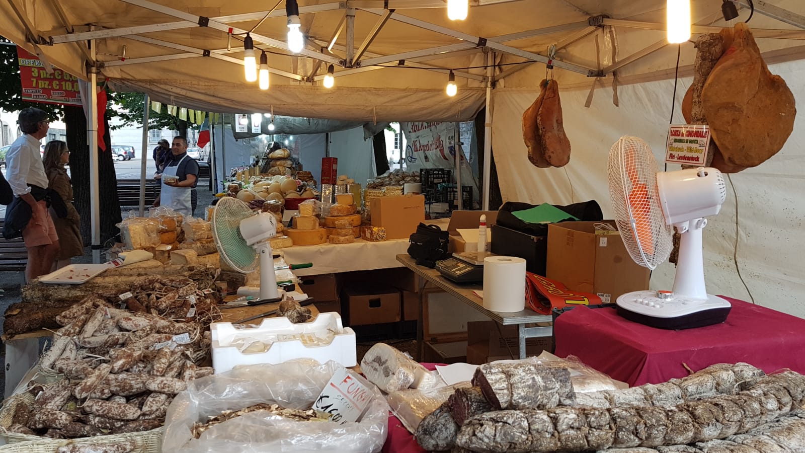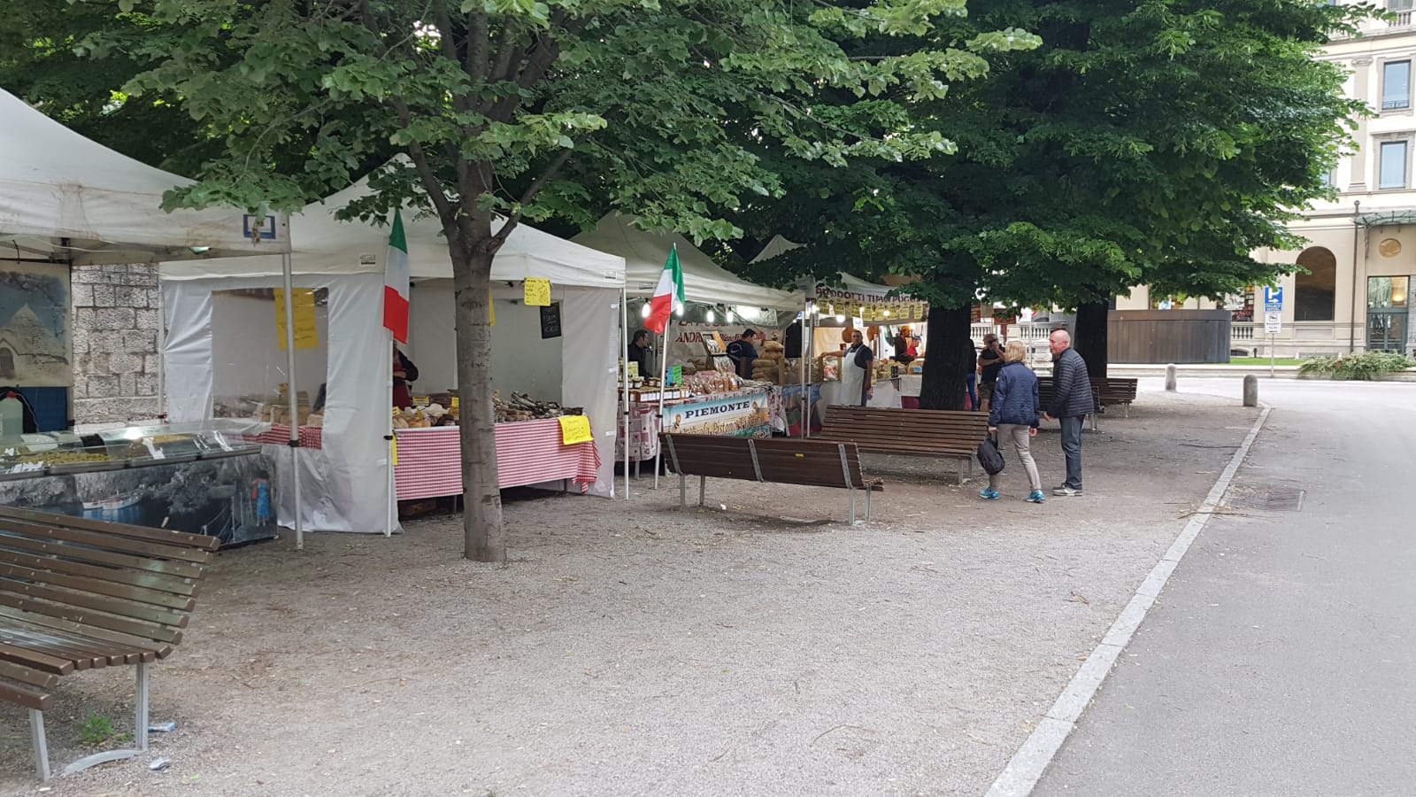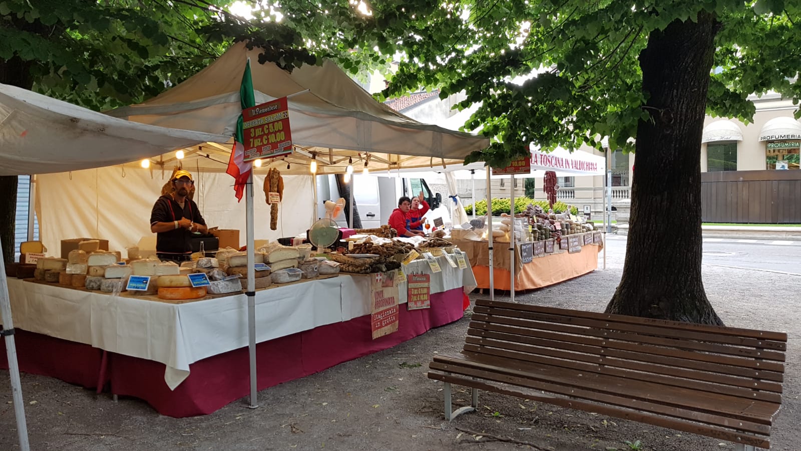 Il racconto è identico di bancarella in bancarella, tra porchetta e capocollo un lieve venticello solleva qualche foglia secca: e la metafora desertica è compiuta. Dieci gazebo con prodotti tipici da mezza Italia, è una piccola enclave dei più grandi mercatini che fino a poco tempo fa aprivano i battenti a due passi da qui: in piazza Cavour.