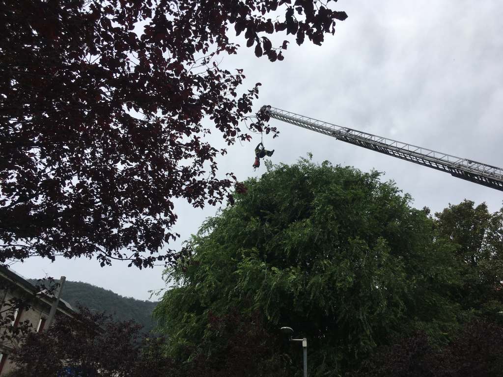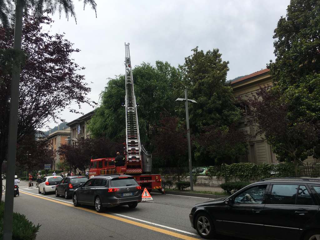 Non riuscendo a raggiungerla da terra, un pompiere si è calato da un’autoscala e ha provato a raggiungere non senza difficoltà, la gattina che, nel tentativo di scappare, è caduta dalla pianta (fortunatamente senza conseguenze).