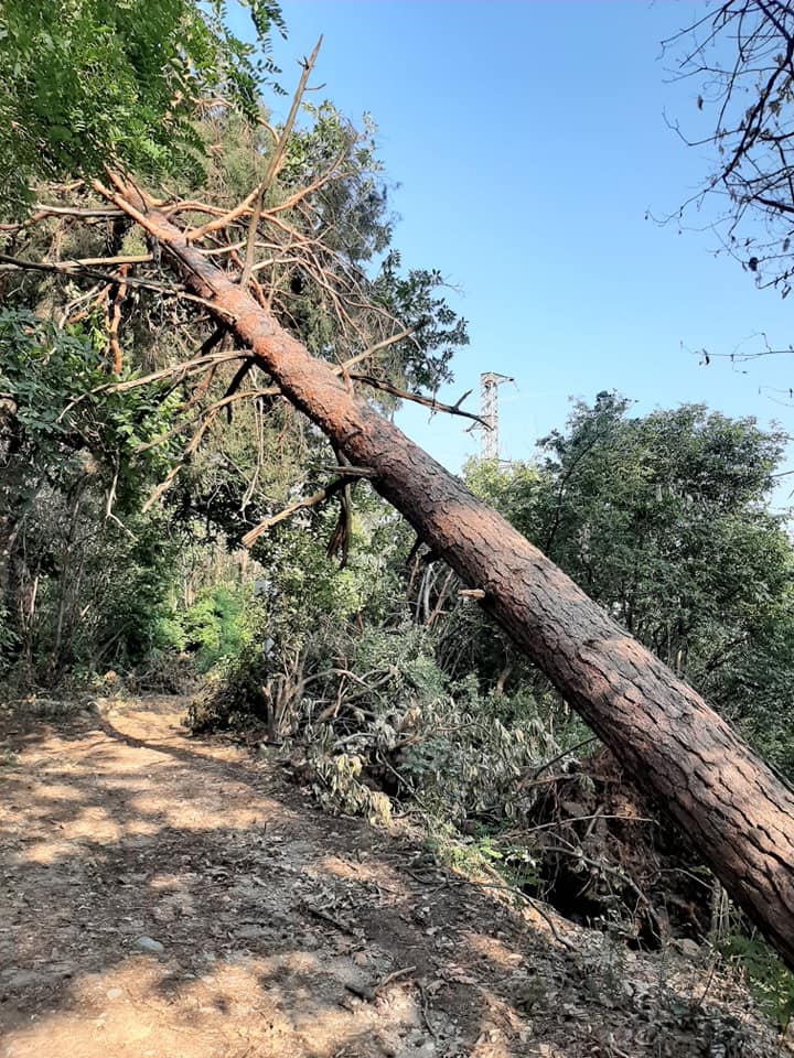 “Il 12 luglio intorno alle 7.30 della mattina si è scatenata una tempesta di acqua e vento. Il Monte Goi ne ha subito gravi conseguenze piante sradicate, spezzate e abbattute (le foto non rendono per cosa è successo). La protezione civile ( un grosso grazie) ha aperto la strada verso la baita e tramite gli elicotteri I tecnici hanno riattivato i ripetitori”. Così racconta Luca Gaffuri, ex consigliere regionale e comunale, notissimo esponente dei dem e residente ad Albate, quartiere dove appunto insiste il monte. Segnala Gaffuri: “Resta una situazione di potenziale pericolo in caso di piogge forti (già nelle settimane successive fango e sassi sono scesi ad Albate lungo la via Alla Zocca e sono arrivati alla strettoia di via Sant’ Antonino) e incendi (negli ultimi anni un paio di volte hanno interessato il Monte Goi)”.
