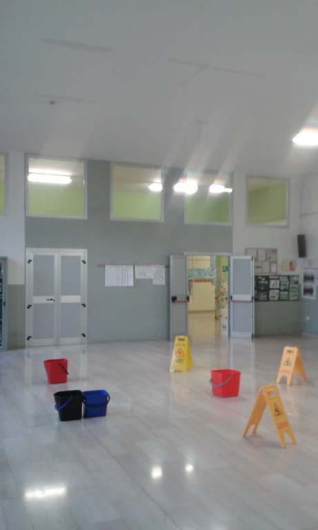 “Sopra l’atrio non ci sono altre aule, solo un controsoffitto e poi il tetto, quindi, è facile immaginare che molto probabilmente la guaina di isolamento è talmente vecchia e deteriorata che va rifatta – prosegue Cereghetti – spero che il Comune intervenga al più presto, innanzitutto per scongiurare qualche tragedia, che di soffitti crollati ne abbiamo già avuti abbastanza, e poi anche perché l’atrio è un luogo utilizzato principalmente dagli alunni per fare l’intervallo, per avere un momento di svago. Non possono essere costretti a stare sempre in classe o essere divisi in piccoli gruppi perché lo spazio, per ovvi motivi di sicurezza, è stato ridotto”.