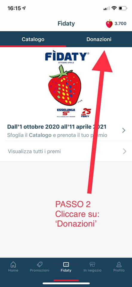 Dona al LIONS CLUB MONTICELLO i punti che ti sono rimasti.Per farlo basta seguire le istruzioni pubblicate sul post o andare sull’app ESSELUNGA , nella parte FIDATY e in alto a destra scegliere “donazioni ” .