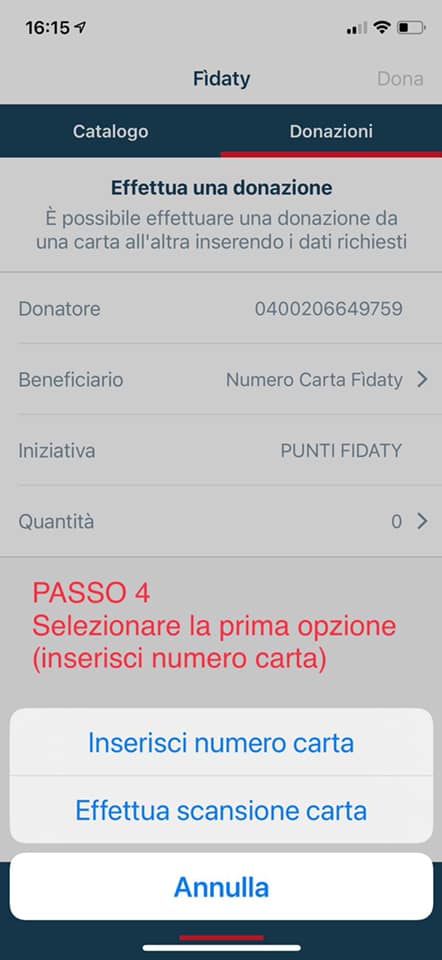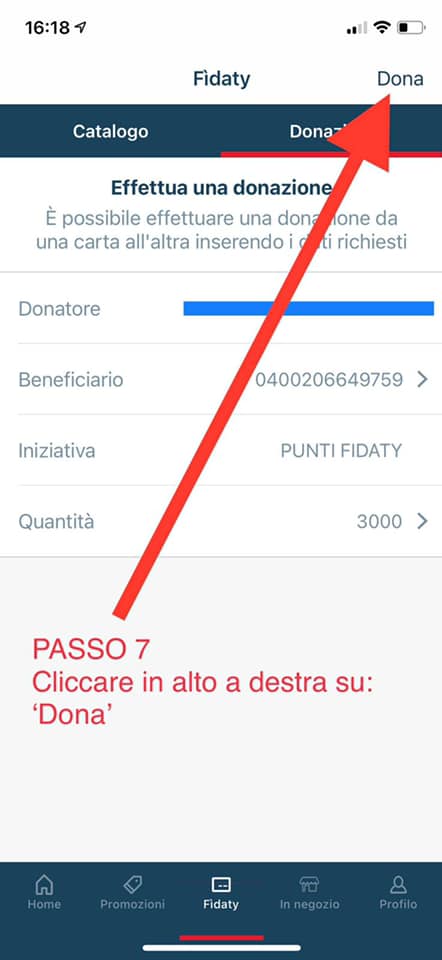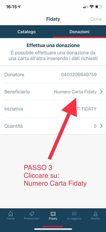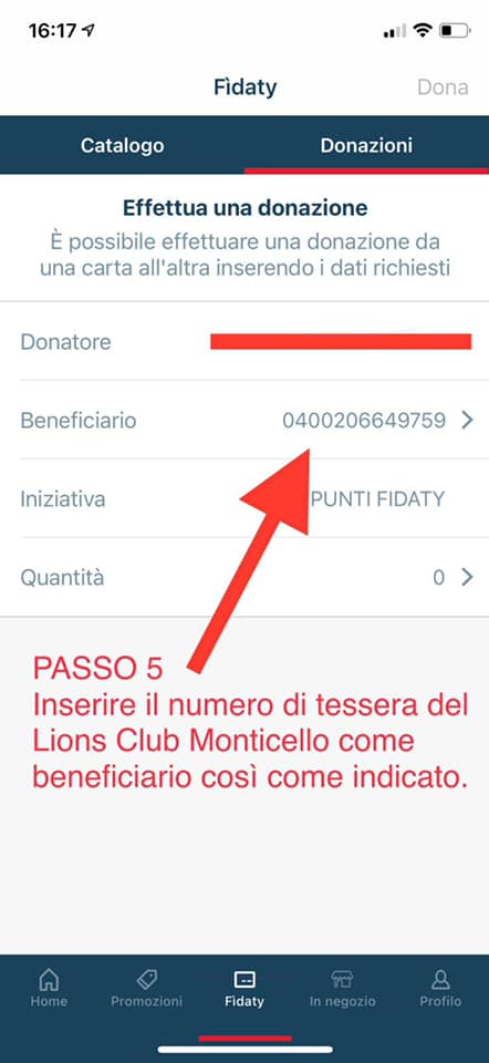 Inserire come beneficiario il numero carta fidaty 0400206649759.