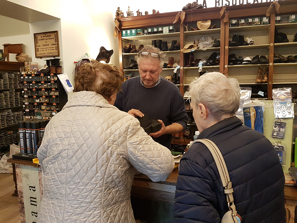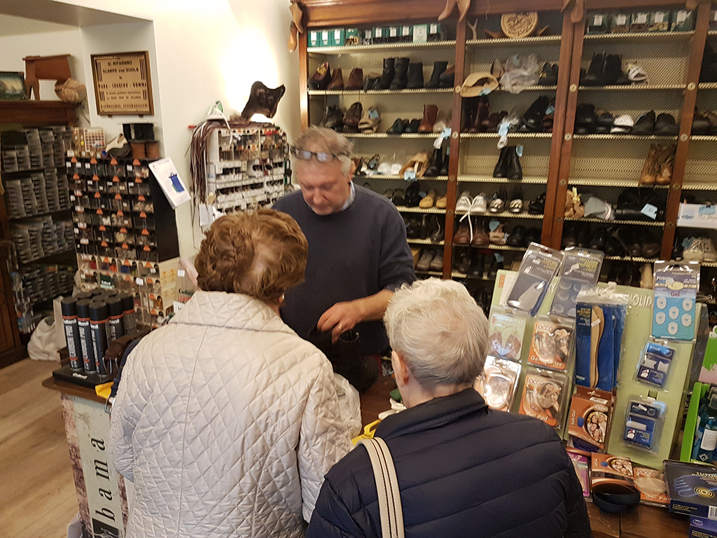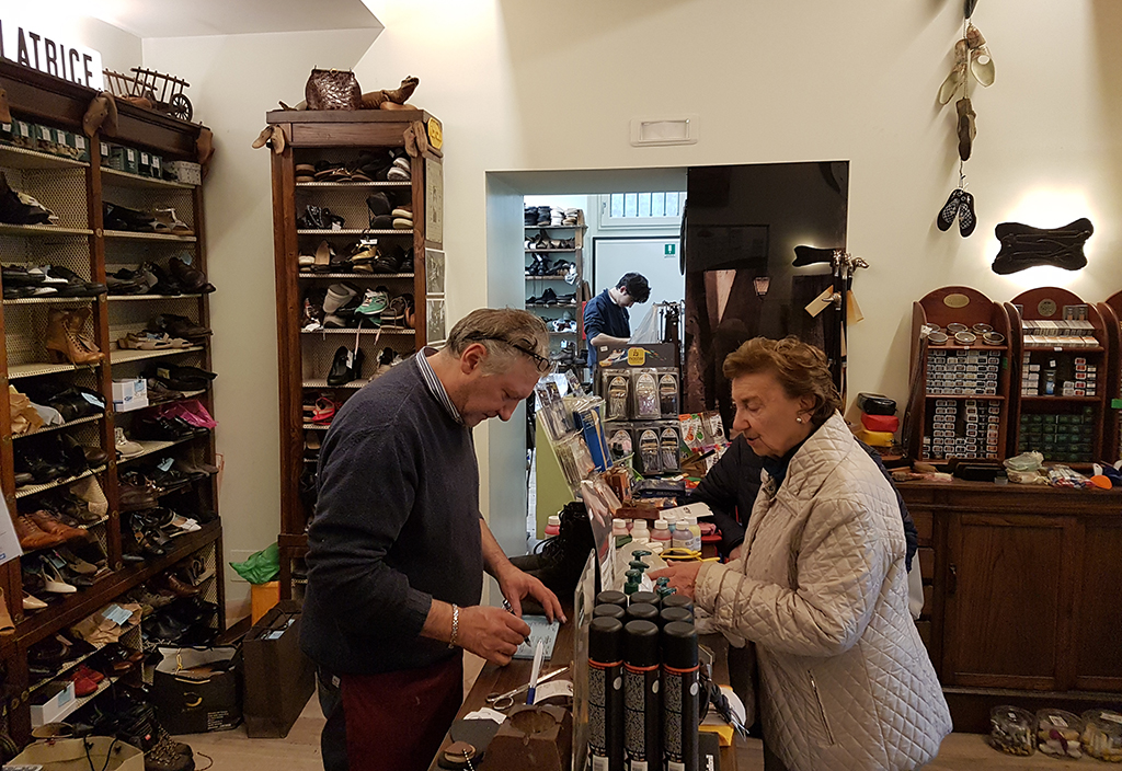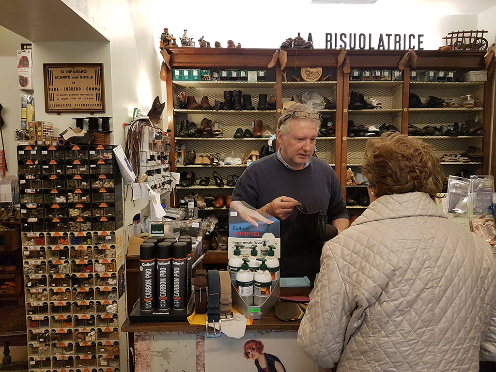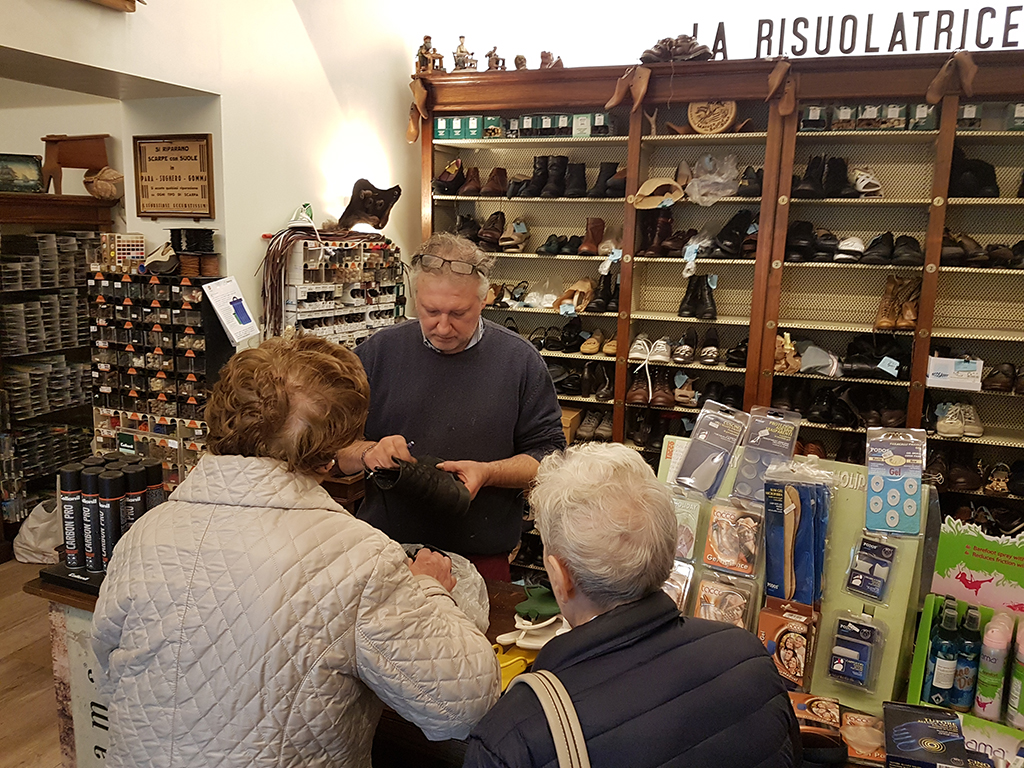 Entrano due signore anziane (“Gli anziani, ecco loro conoscono il valore di una scarpa”, dirà). “Mi dispiace signora – dice Mauro – si possono riparare ma ci vorrà tempo per il materiale, ormai si fa fatica”.