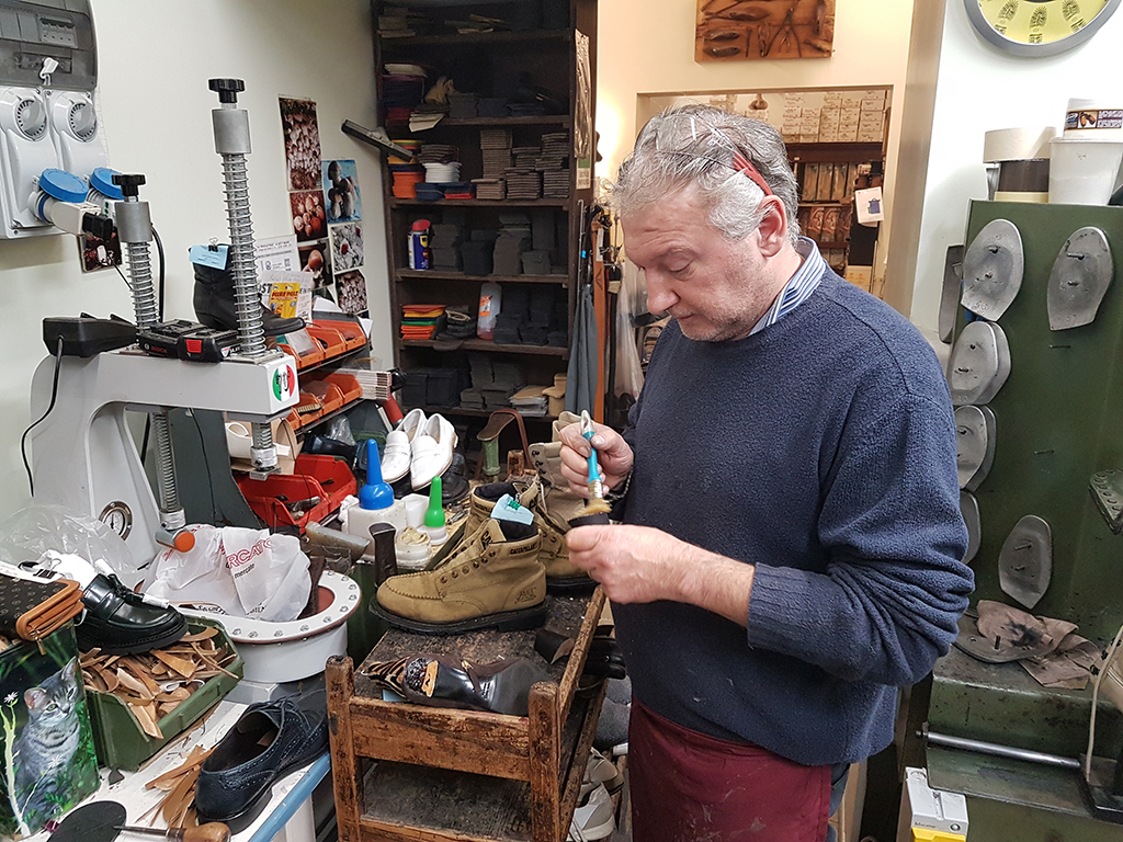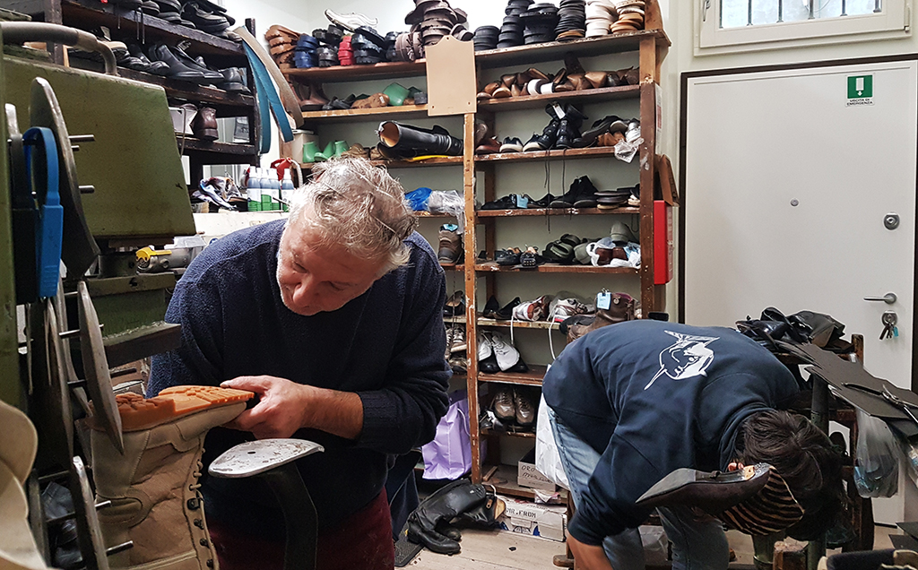 Bisogna, abbiamo sempre clienti che portano scarpe e stivali da mille euro, certo non li buttano. Ma, capisci, non basta. Ci specializziamo. E poi tornare alla produzione significa tornare alla nostra arte