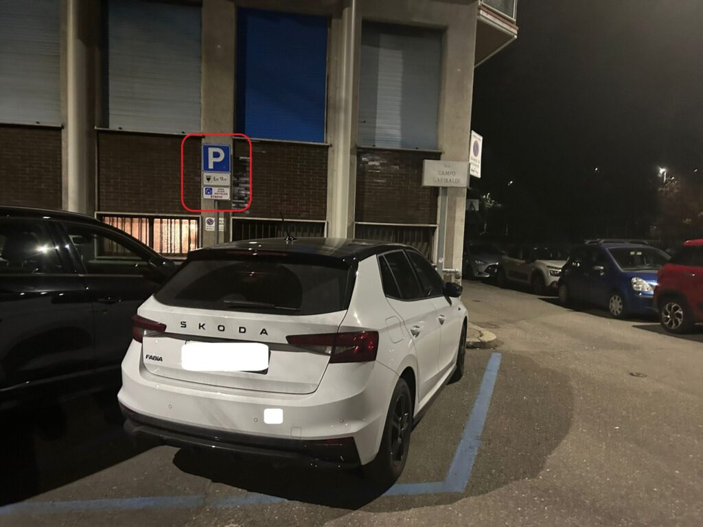 Venerdì 13 febbraio, alle ore 19:00, ho parcheggiato la mia auto in Via Campo Garibaldi, proprio di fronte al cartello che indica gli orari di pagamento del parcheggio. Casualmente, parcheggio esattamente davanti al cartello che indica il parcheggio a pagamento ed i relativi orari (vedi fotografia, l’auto nera era la mia). Non essendo riportato alcun divieto relativo alla giornata successiva, ho regolarmente pagato la sosta tramite l’app EasyPark, coprendo il periodo fino alle 9:00 del mattino dopo. Quando sono tornato sul posto la mattina seguente, con grande sorpresa, ho trovato tutta l’area dei parcheggi completamente vuota e delimitata da strisce di plastica rosse e bianche.