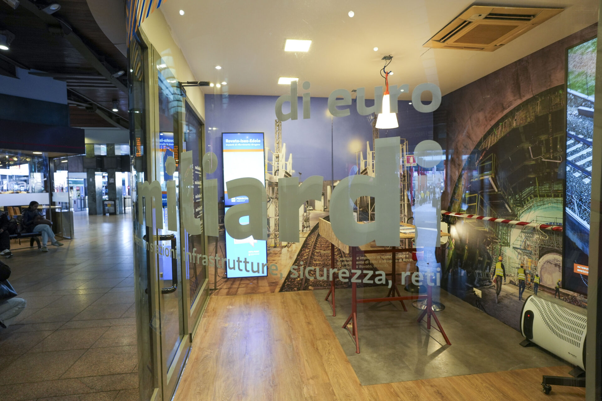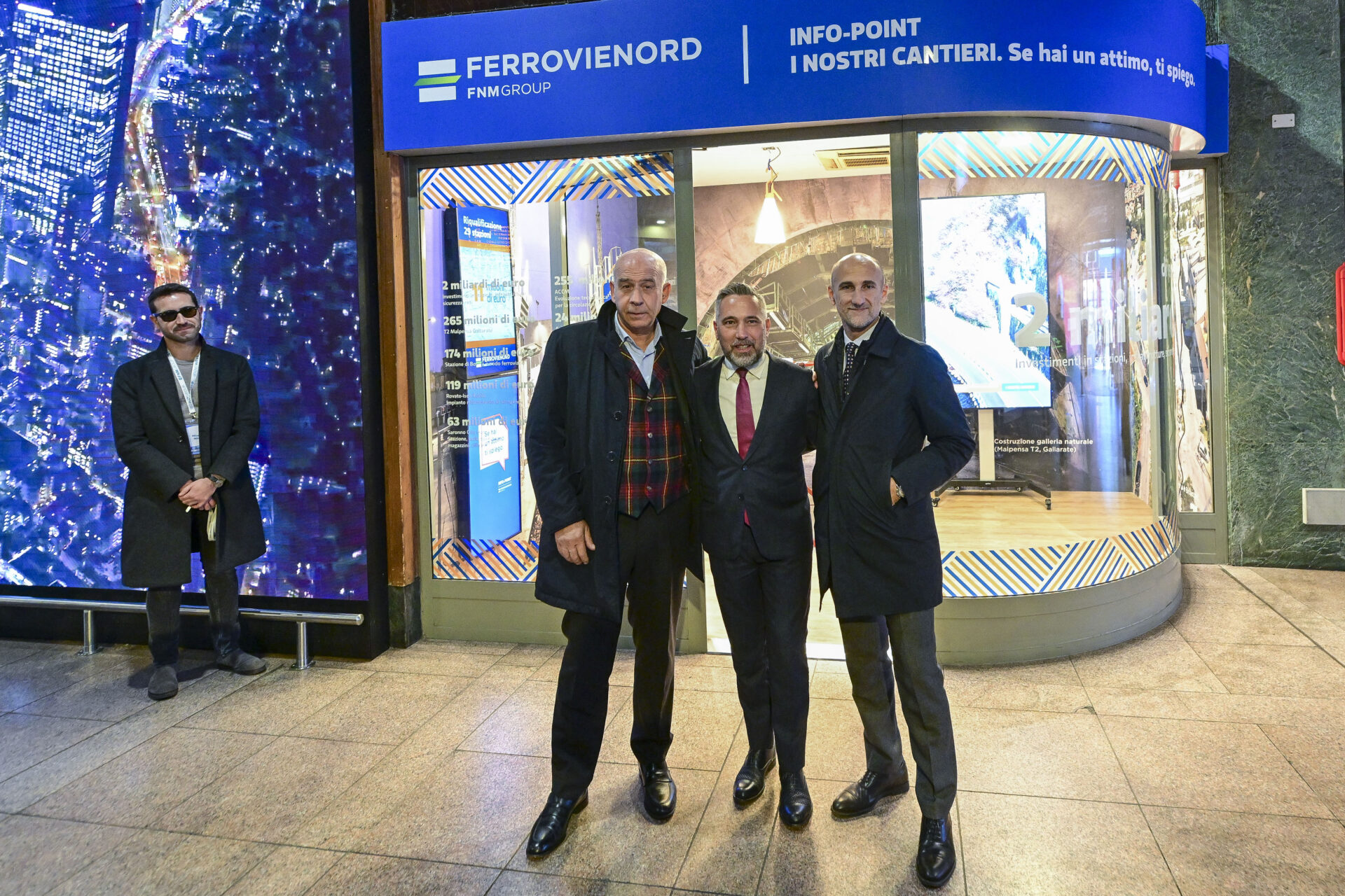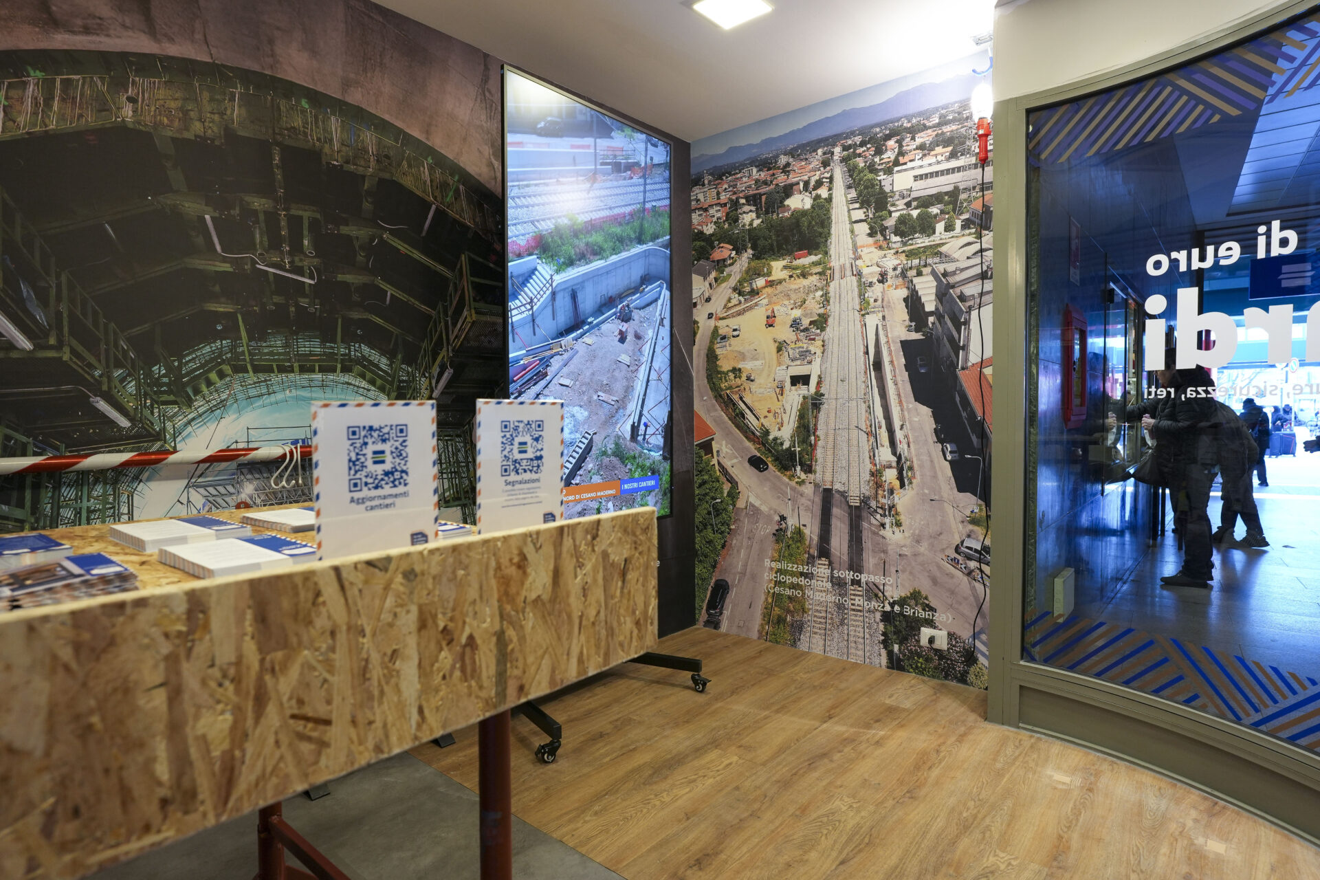 L’Info Point Cantieri è uno spazio fisico, collocato nel corridoio di ingresso sulla destra, che sarà presidiato dal lunedì al venerdì (dalle 8.30 alle 12.30 e dalle 13.30 alle 16.30) e che potrà accogliere chiunque voglia conoscere meglio l’intensa attività di cantiere che FERROVIENORD sta promuovendo e gestendo sulla rete ferroviaria lombarda. Dalle grandi opere, come il collegamento tra il terminal 2 dell’aeroporto di Malpensa e Gallarate o il potenziamento del nodo di Seveso, fino al rifacimento delle stazioni e agli aggiornamenti tecnologici e di sicurezza, sono 39 i principali lavori attualmente in corso e programmati da FERROVIENORD.
