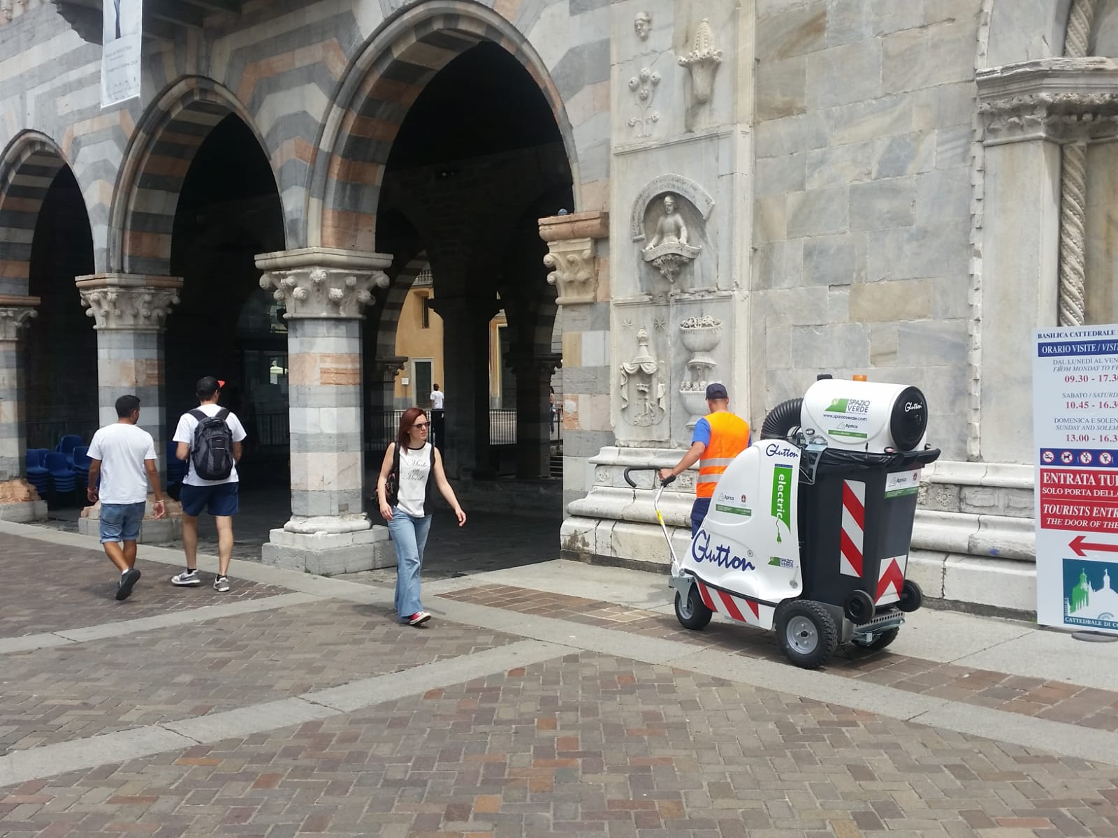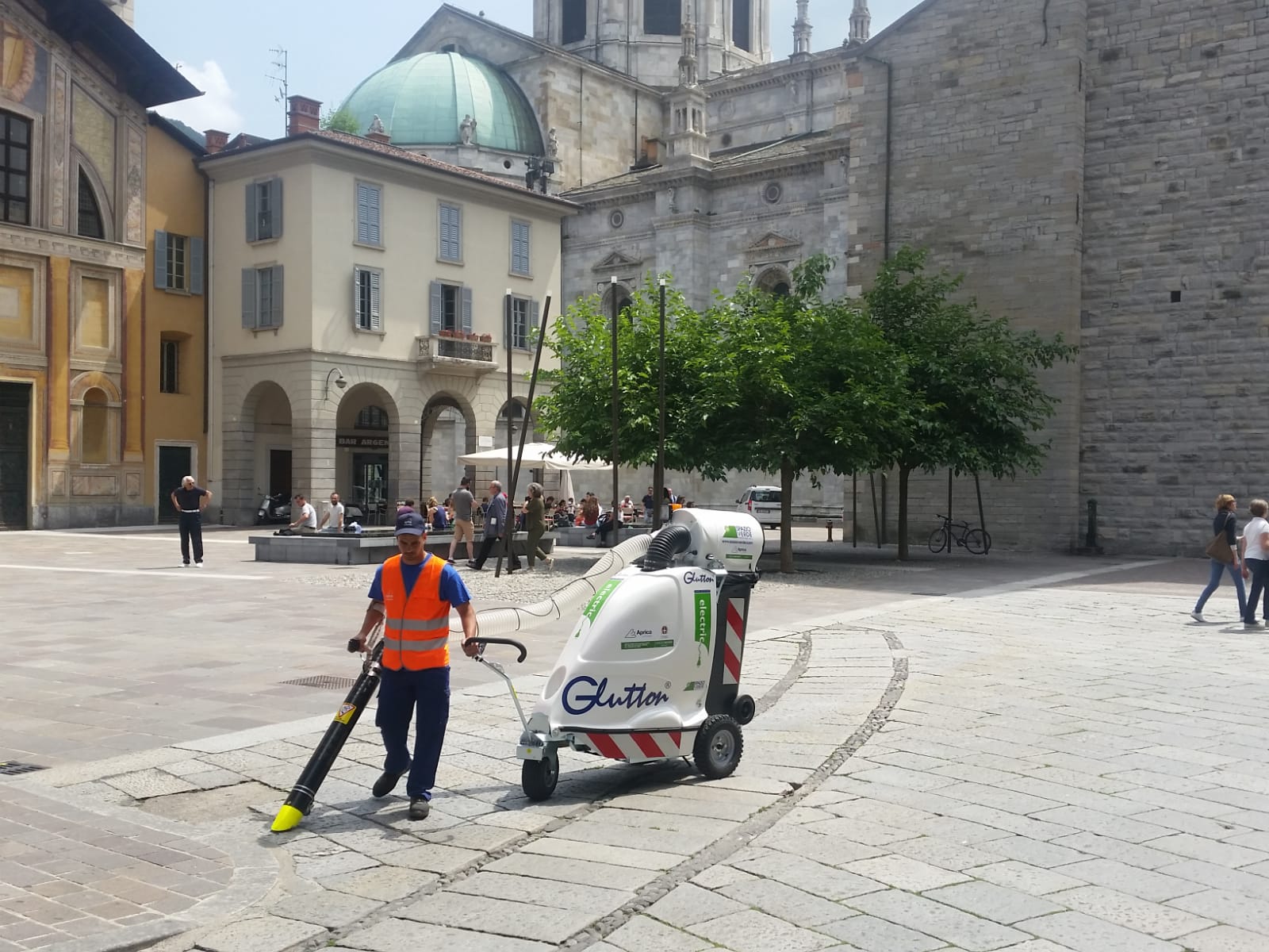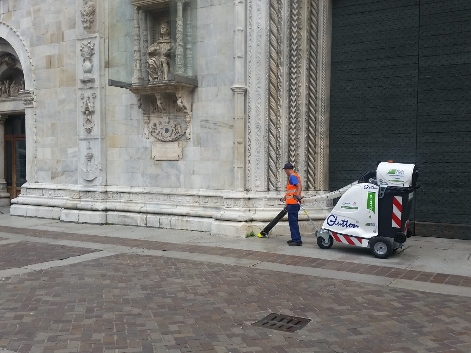 Poi, come annunciato nelle scorse settimane è partita l’attività del nuovo super aspiratore. Sembra più un segway o un caddie. In realtà è un mega-aspirapolvere elettrico. Debutterà a maggio, in centro a Como. Enorme capacità di aspirazione dei rifiuti urbani, silenzioso e ecosostenibile, verrà utilizzato tutti i giorni, già oggi era operativo dalle 9.30 alle 16. Dotato di tubo di 125 mm è in grado di risucchiare carta, cartone, pacchetti di sigarette e mozziconi, lattine e bottiglie in vetro, plastica o metallo, escrementi di animali, foglie secche, rifiuti incastrati nelle siepi alberate, residui di potatura, trucioli. Inoltre può intervenire quando è impossibile, o quasi, raggiungere con le scope marciapiedi, strade, spazi pubblici, area mercato, parcheggi, moli, stazioni, zone alberate, radici di alberi.