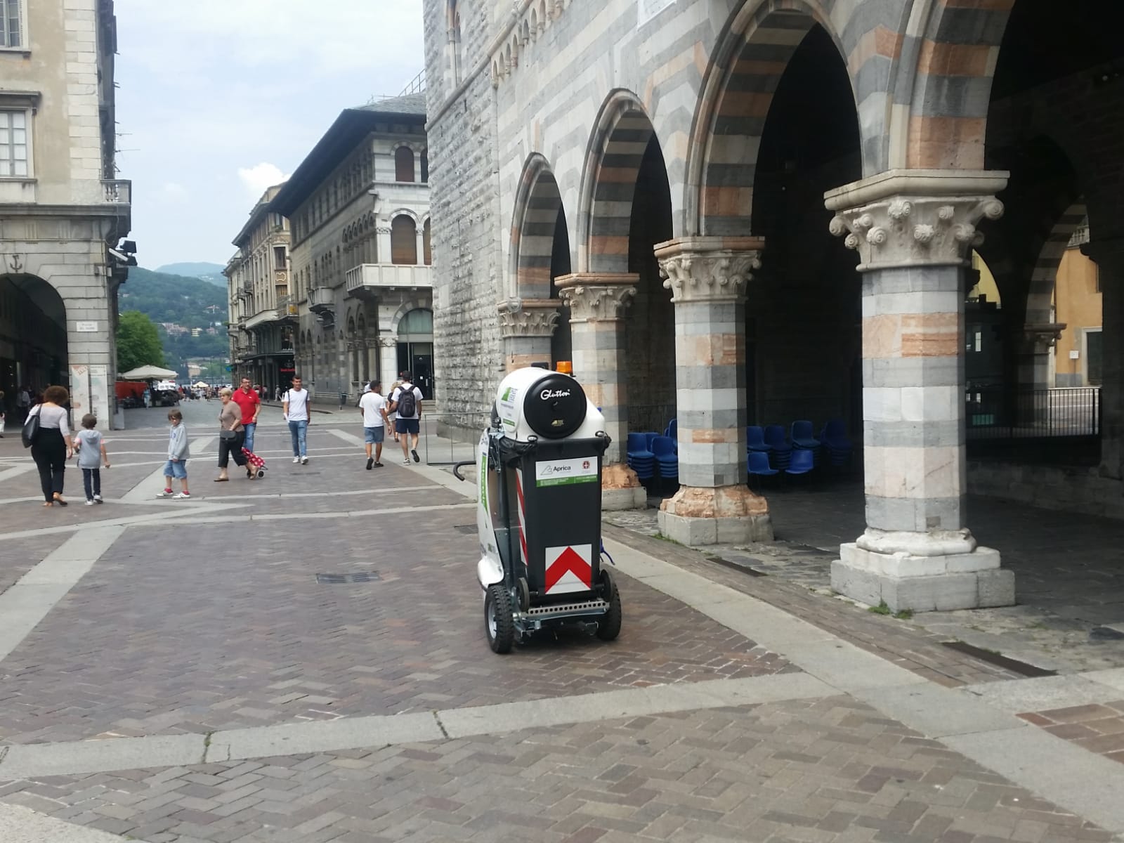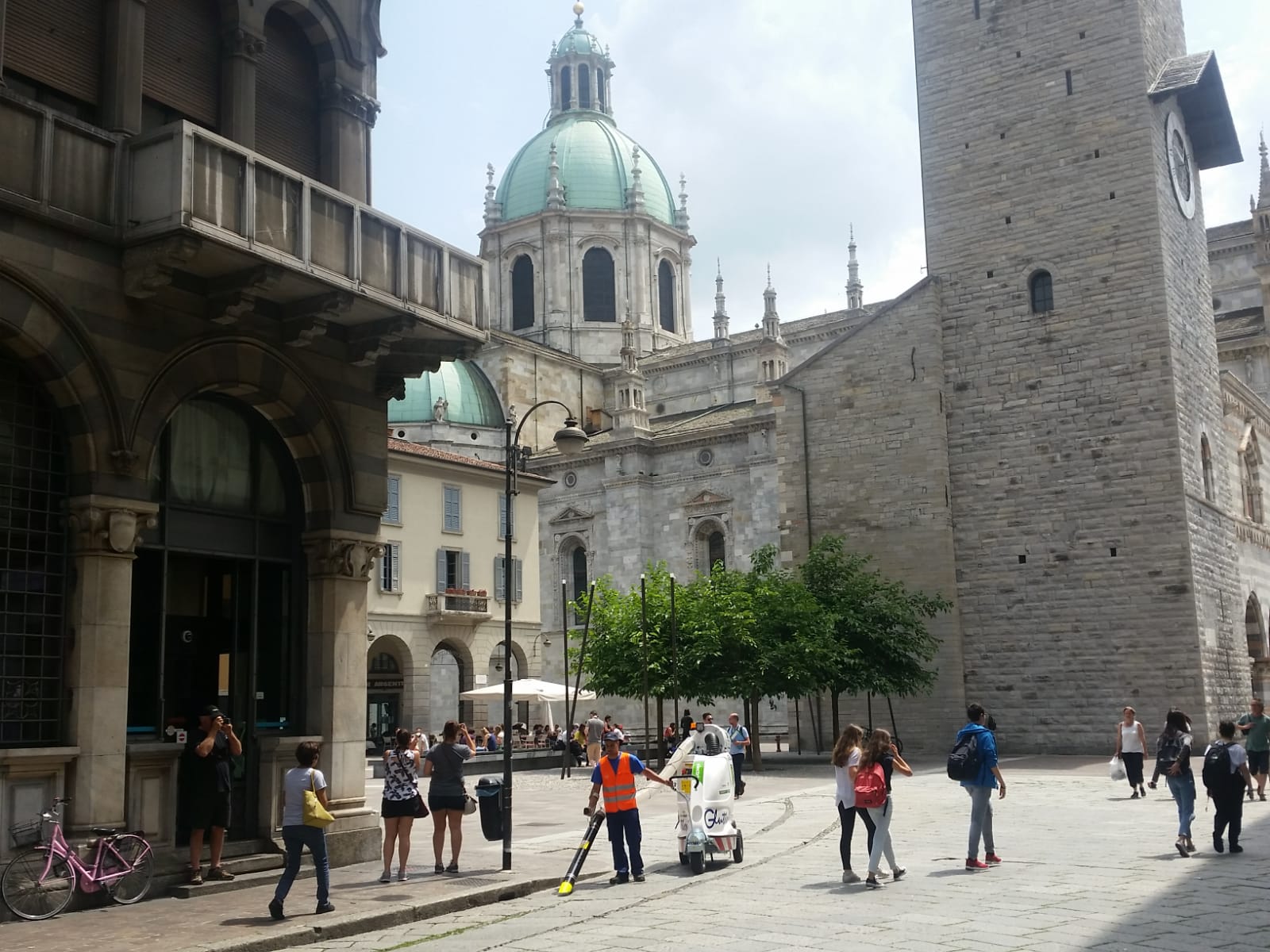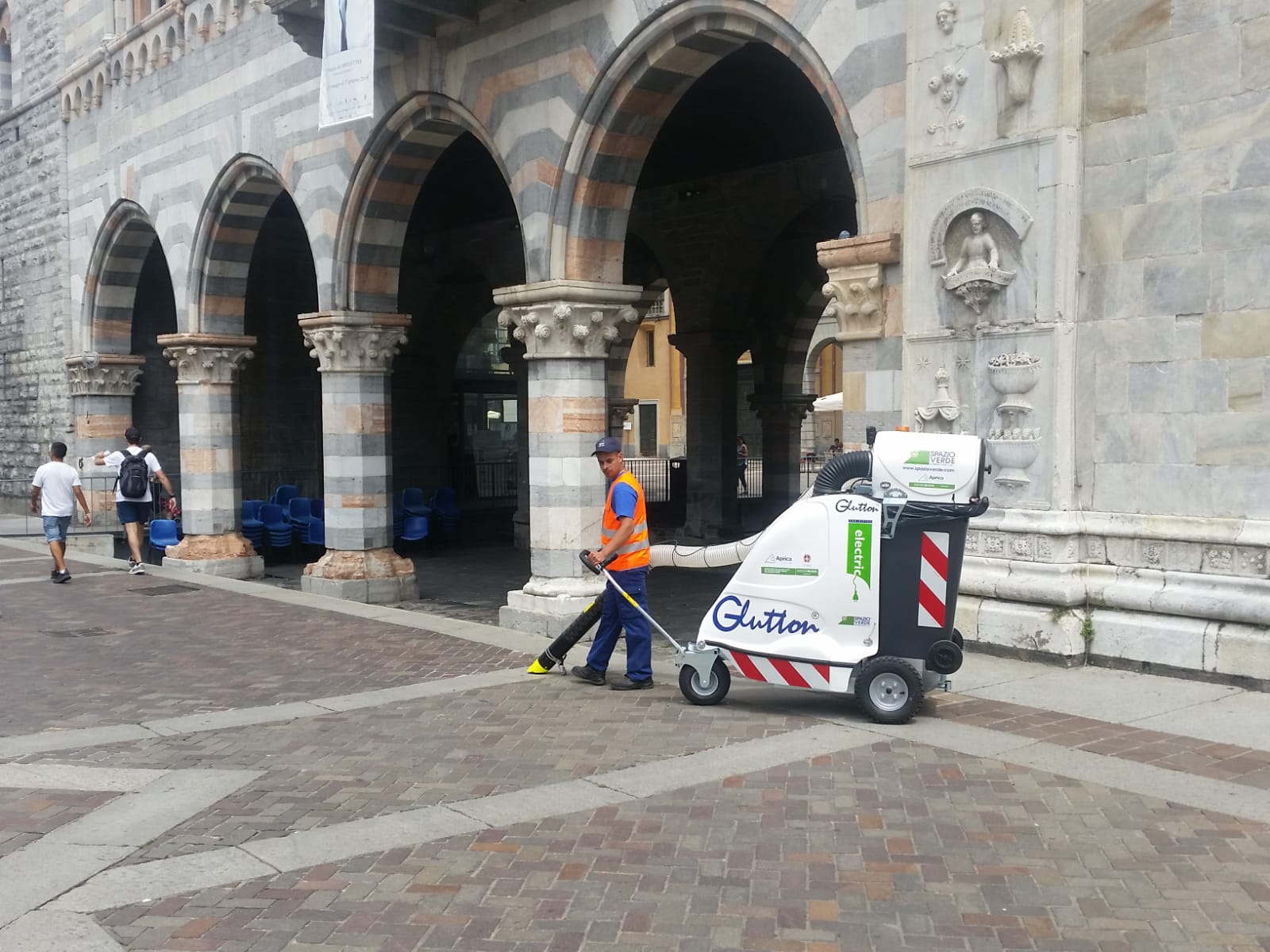 Poi, come annunciato nelle scorse settimane è partita l’attività del nuovo super aspiratore. Sembra più un segway o un caddie. In realtà è un mega-aspirapolvere elettrico. Debutterà a maggio, in centro a Como. Enorme capacità di aspirazione dei rifiuti urbani, silenzioso e ecosostenibile, verrà utilizzato tutti i giorni, già oggi era operativo dalle 9.30 alle 16. Dotato di tubo di 125 mm è in grado di risucchiare carta, cartone, pacchetti di sigarette e mozziconi, lattine e bottiglie in vetro, plastica o metallo, escrementi di animali, foglie secche, rifiuti incastrati nelle siepi alberate, residui di potatura, trucioli. Inoltre può intervenire quando è impossibile, o quasi, raggiungere con le scope marciapiedi, strade, spazi pubblici, area mercato, parcheggi, moli, stazioni, zone alberate, radici di alberi.