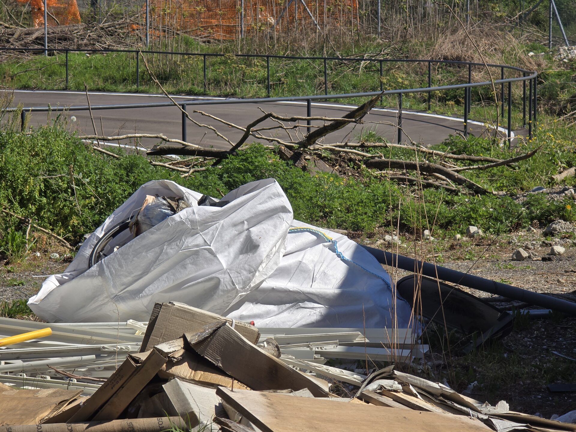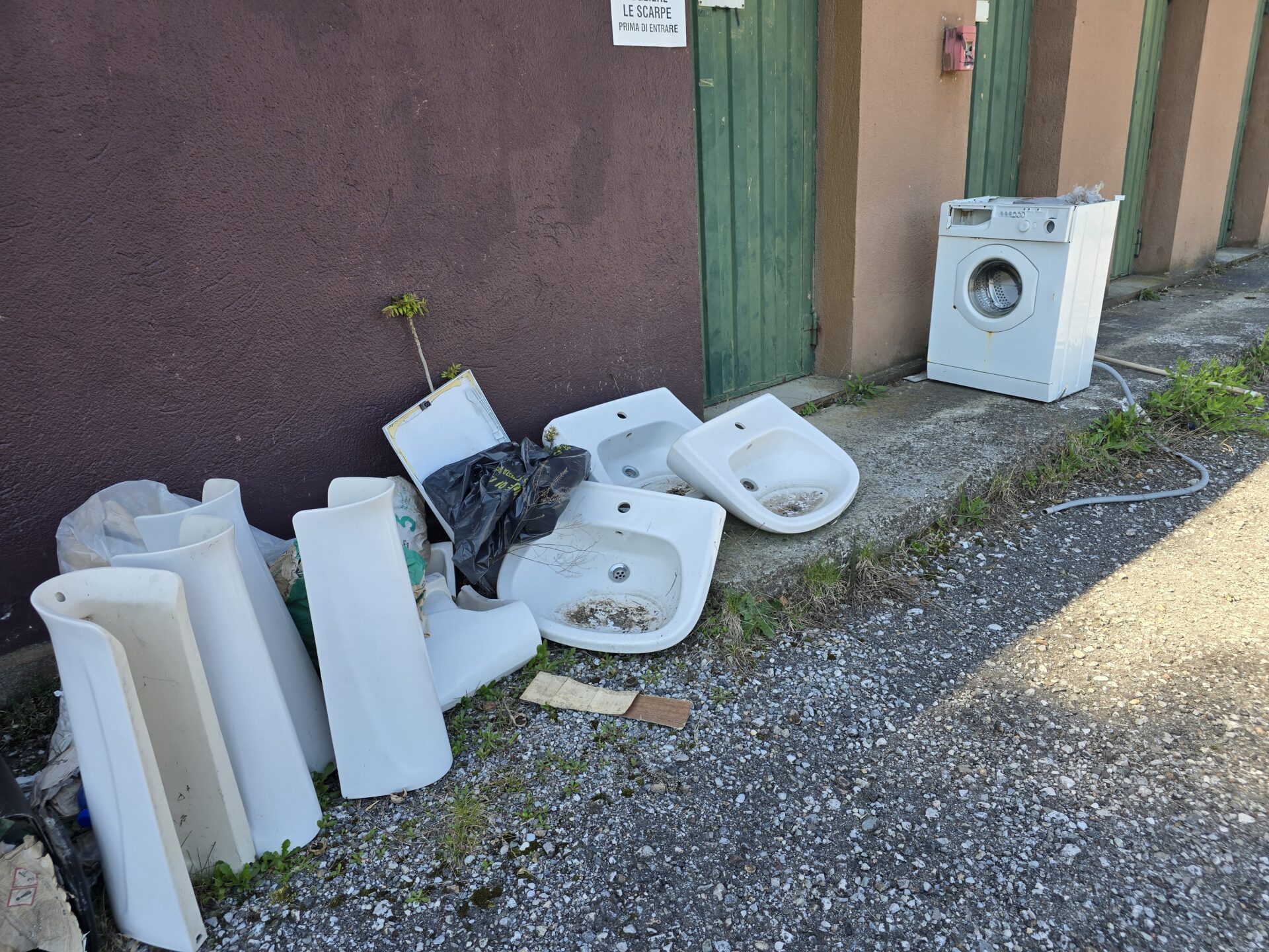 Stesso discorso per l’asfalto steso lungo l’ovale della pista rotellistica all’altro capo del centro: il manto nuovo, mai usato, è circondato tutto intorno da lavandini e ‘turche’ abbandonati, da ramaglie e materiali accatastati, da una generale sensazione di desolazione.