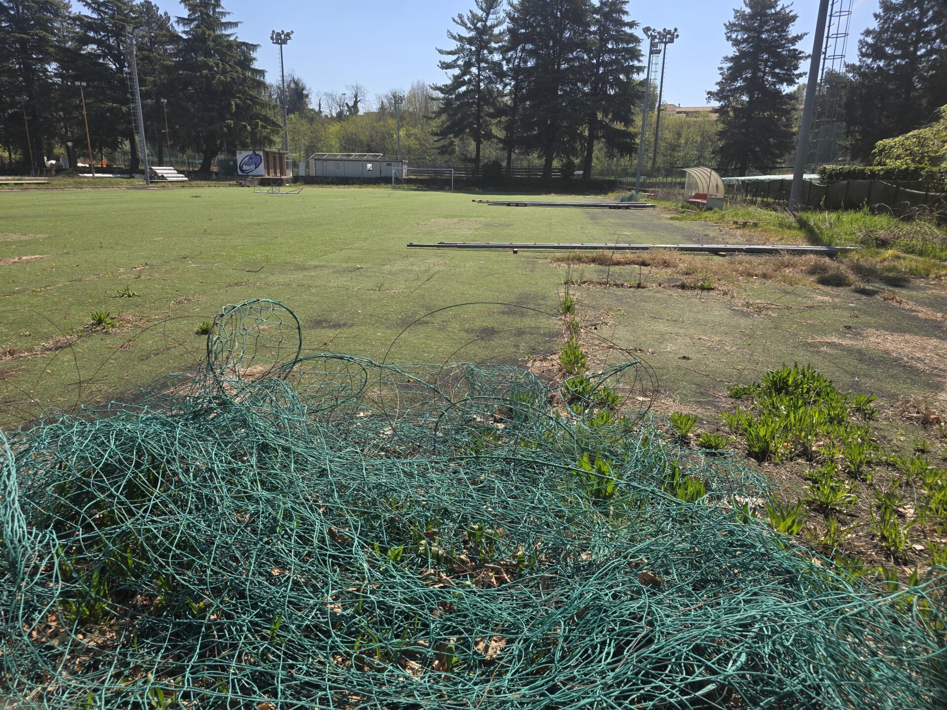 I lavori del primo lotto per il maxi progetto di una cittadella del rugby e dello sport tra via Longoni e via Belvedere – stando ai documenti ufficiali – sono conclusi da oltre 8 mesi. Ma da allora, cioè dal 1° agosto 2025 a oggi, il nuovo manto in sintetico posato sul principale campo da rugby del centro sportivo non è mai stato calcato da nessuno e – tra fogliame, aghi e pigne accumultati al suolo in grandi quantità – in mezzo al verde tecnologico da centinaia di migliaia di euro già spunta persino l’insalatina matta (e naturale al 100%).