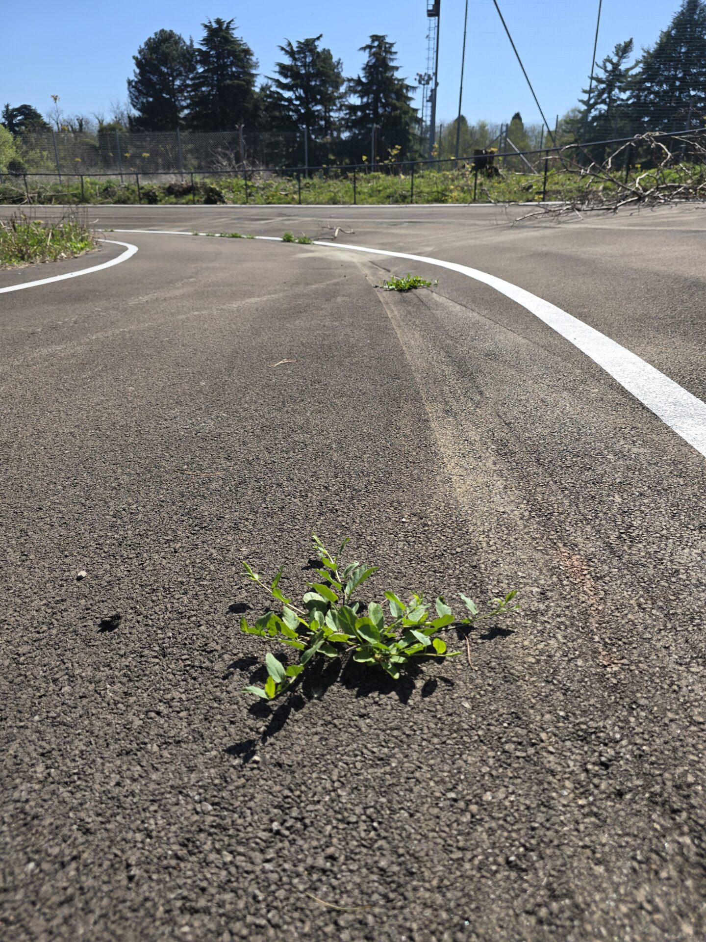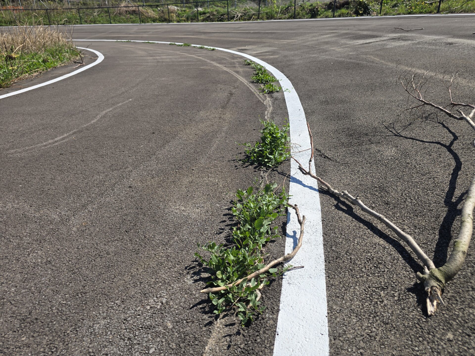 E, pure qui, allegre piantine crescono rigogliose in mezzo al nero bitume steso pochi mesi fa.