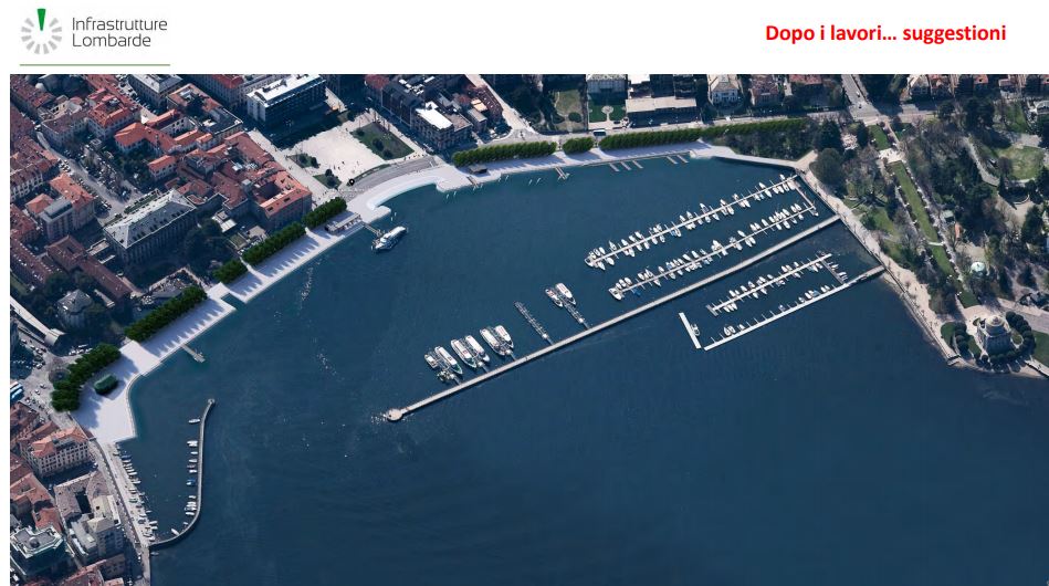 2 FASI: CANTIERI “MOBILE” E “PROGRESSIVO” – La fase n.1 dei lavori, il cantiere cosiddetto “progressivo”, come detto avrà una durata di 21 mesi, da settembre 2019 a giugno del 2021, e interesserà progressivamente l’area da Lungo Lario Trieste a Piazza Cavour e i giardini di Ponente. Nella Fase 2, il cantiere “mobile” la cui esecuzione dei lavori é prevista in 10 mesi con avvio nel giugno 2021 e termine nell’aprile del 2022, sarà costituito da interventi puntuali mai superiori a 15 metri di lunghezza e investiranno l’area della biglietteria e del Lungo Lario Trento. In questa fase verrà realizzato il pontile galleggiante per disabili, l’adeguamento sismico della Vasca “B”, verrà demolita la scala a ventaglio e realizzata la scalinata in Piazza Cavour. “Durante tutta la durata dei lavori, non dovrà mai mancare l’informazione in merito all’avanzamento dei lavori e del cantiere”, ha specificato a gran voce Sertori.