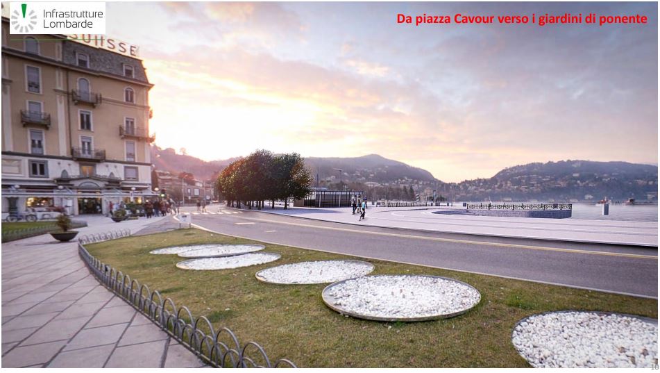 Nel nuovo progetto spicca l’assenza degli arredi (come da immagini) demandata al Comune di Como. Dunque per il momento, almeno dal punto di vista estetico, il design della promenade si mostra come una lunga spianata con viale alberato.