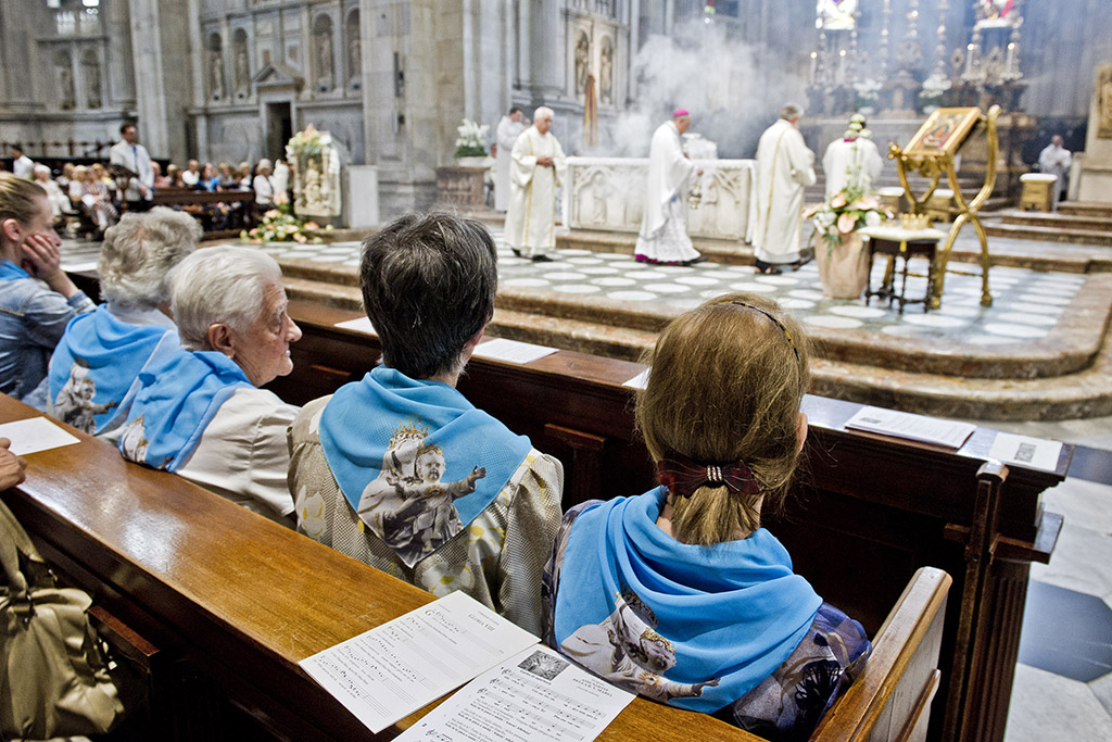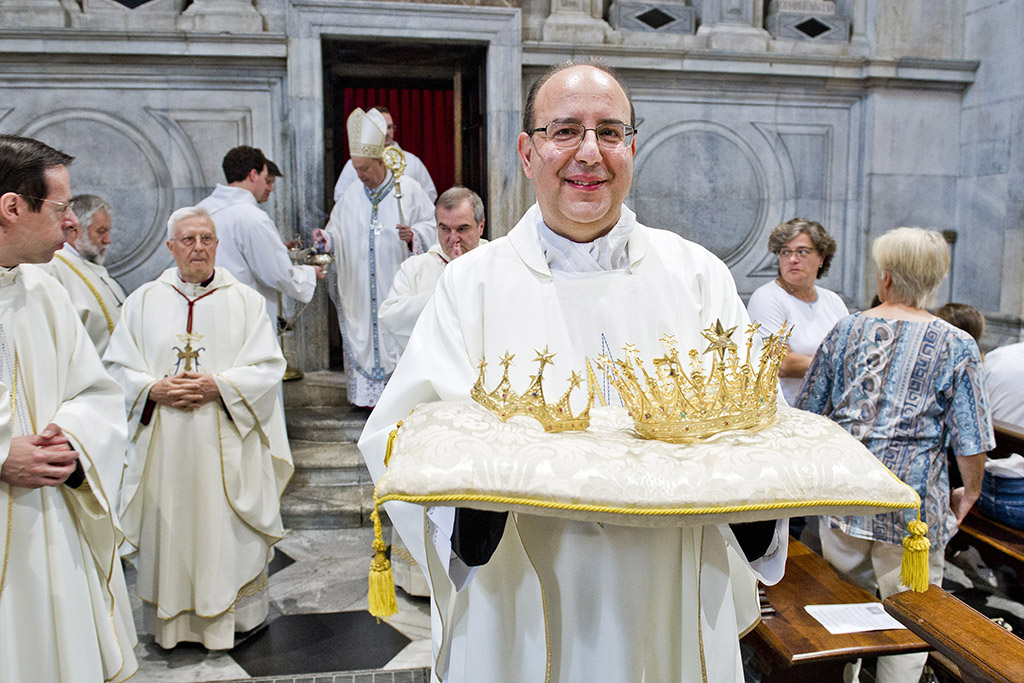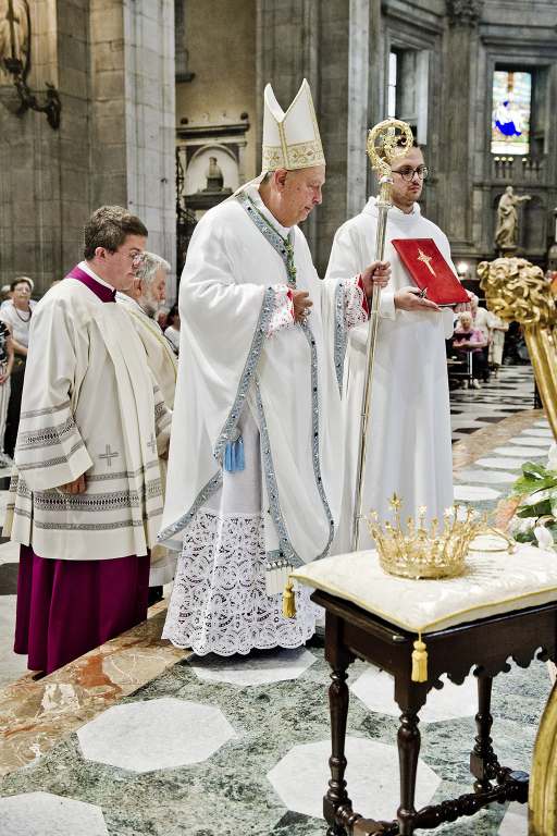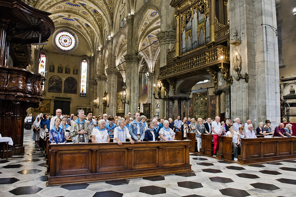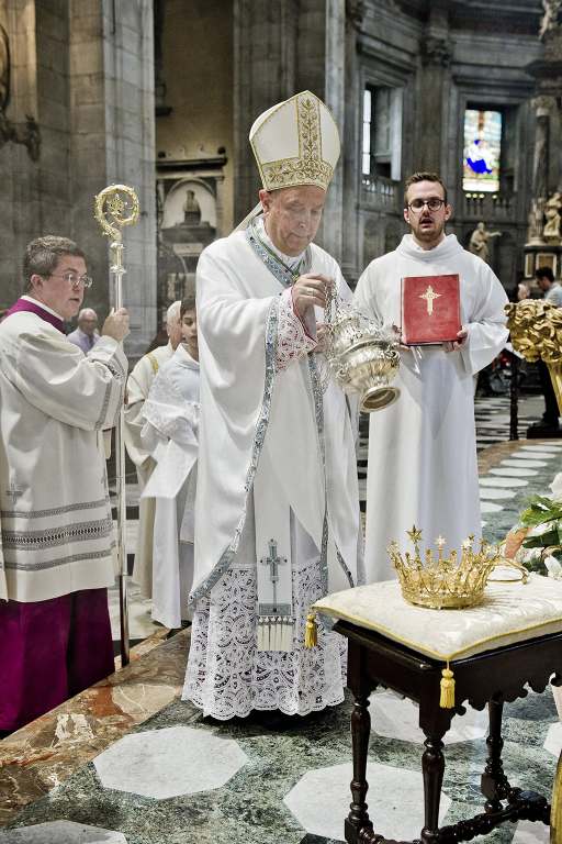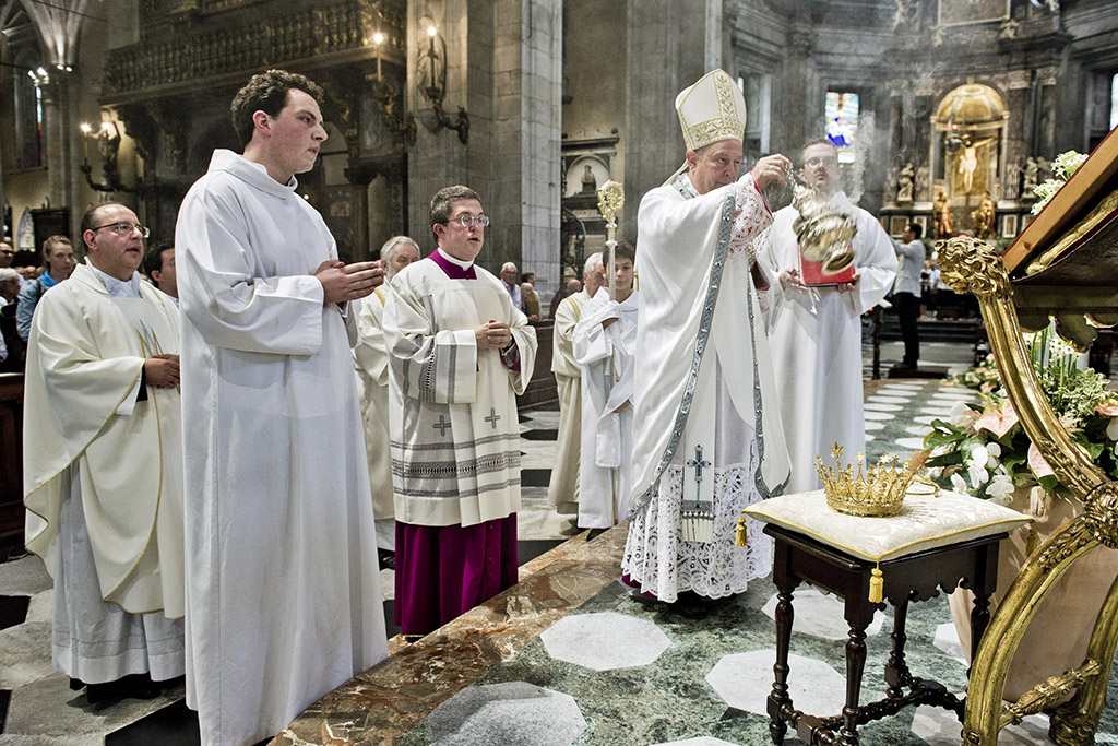 Non c’è profano senza sacro e viceversa. In duomo a Como il vescovo, Oscar Cantoni, ha celebrato il Pontificale. Nell’occasione sono stati celebrati anche i 100 anni dell’incoronazione della Madonna alla chiesa di San Giorgio in Borgovico con esposte le corone d’oro.