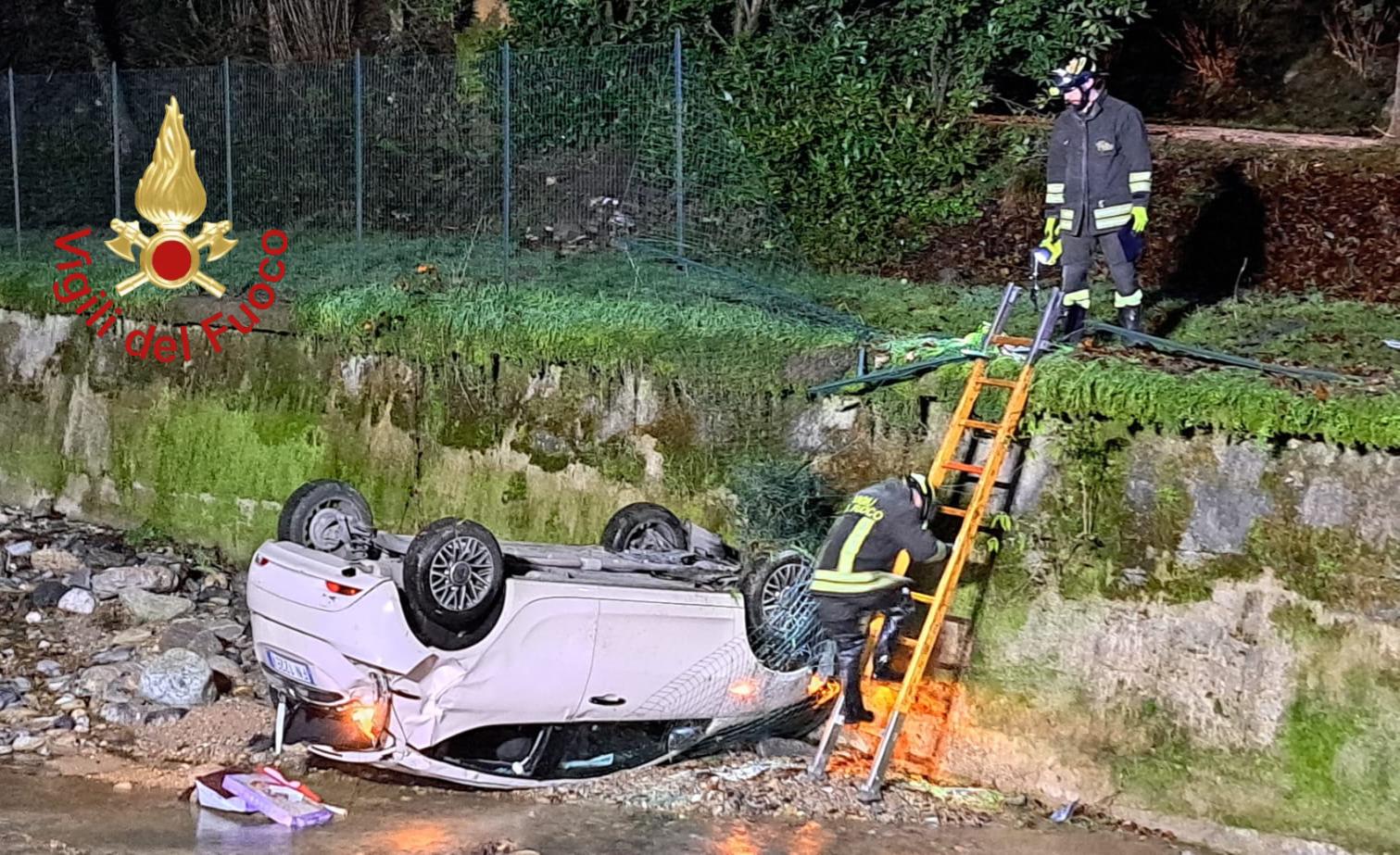 Incidente ieri sera a Como. Un’auto, Fiat 500, è finita nel torrente Cosia all’altezza di via Pannilani, all’altezza di un ponticello.