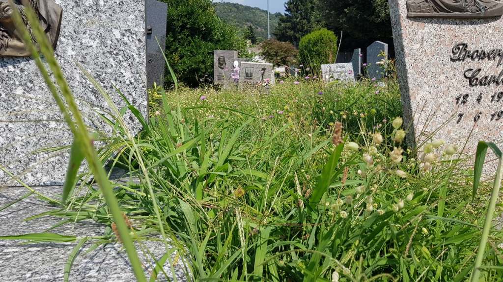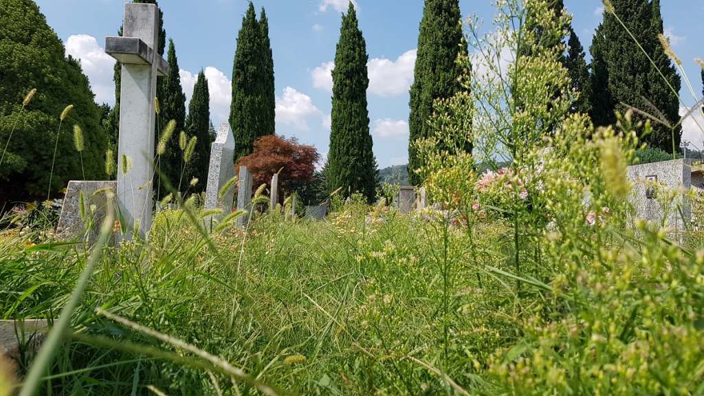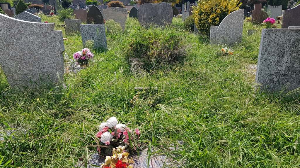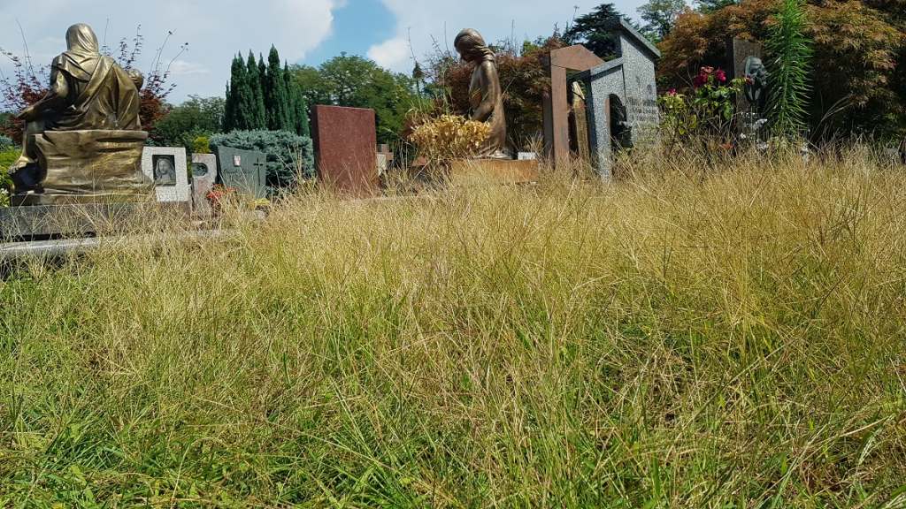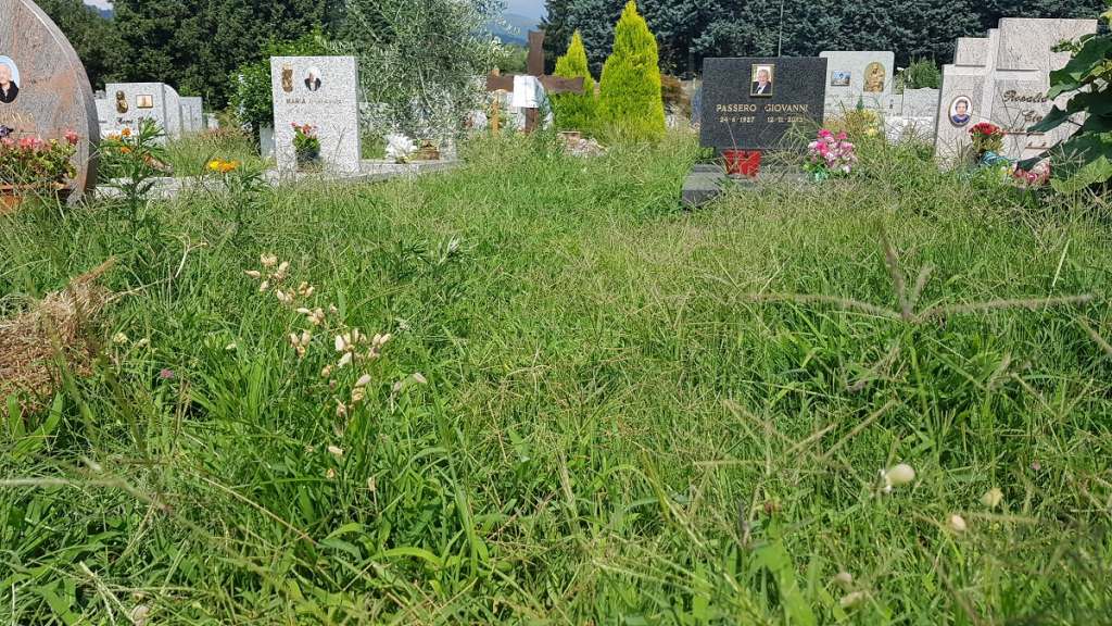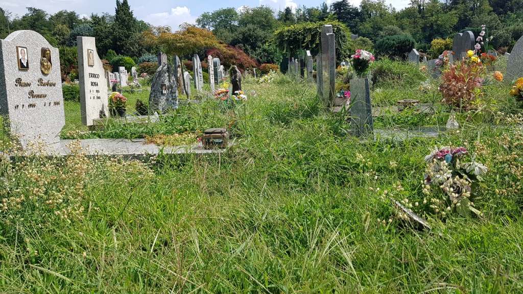 Molto più fresche – si perdoni il paradosso – sono invece le radici dell’erba che da settimane ormai travolge e soffoca le tombe dei campi, i vialetti, i crocifissi che spuntano appena da erbacce alte quasi mezzo metro.