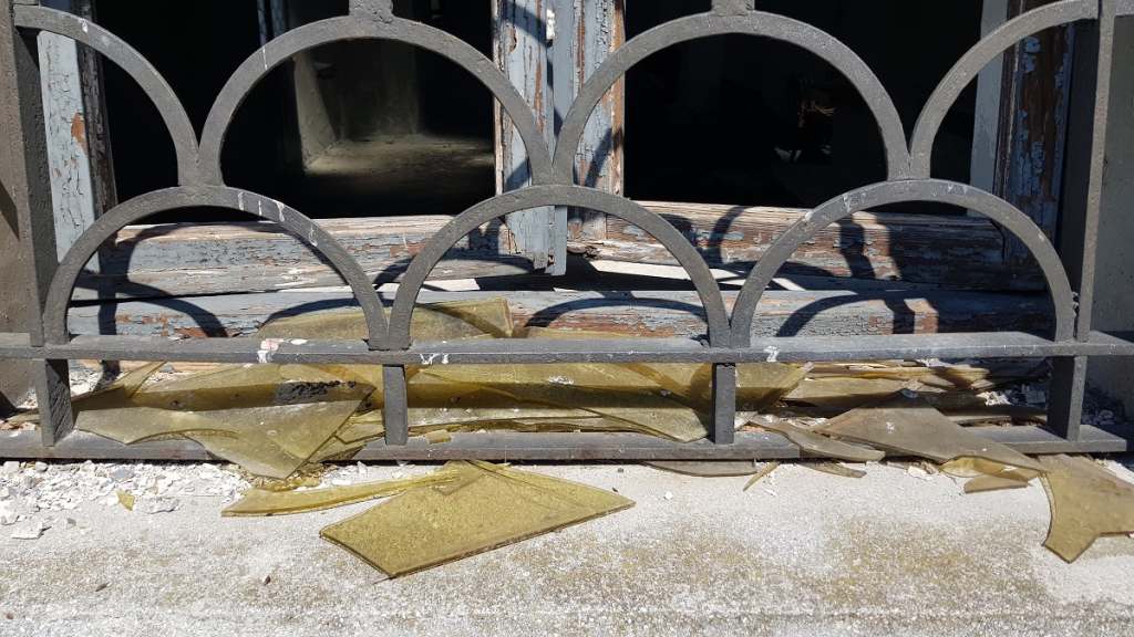 Eppure basta affacciarsi dalle vetrate rotte e in mille pezzi, o banalmente dalla fessura che il catenaccio lascia nel portale principale della Cappella del cimitero, per cadere ancora più in basso.