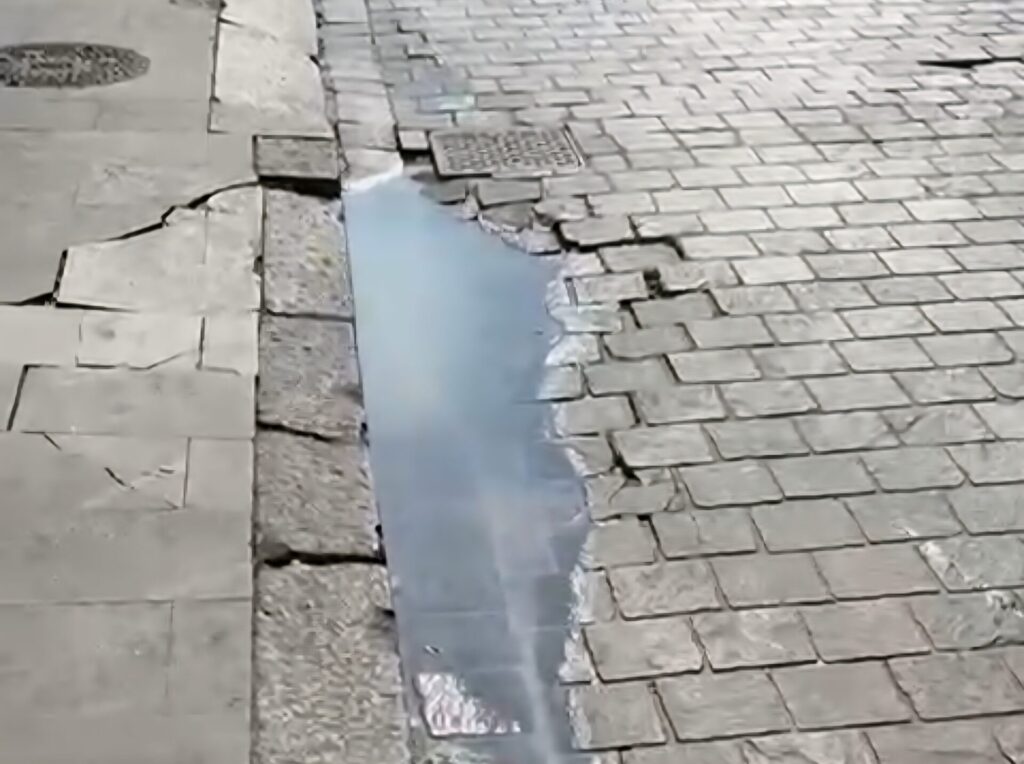 In più, proprio nell’area che sempre l’origine della fuoriuscita, si nota benissimo una parte della pavimentazione tra piastrelle e marciapiede letteralmente in pezzi e anche leggermente infossata. La situazione è già stata segnalata all’amministrazione all’inizio del 2026, ma finora non si è avuto un intervento risolutivo.