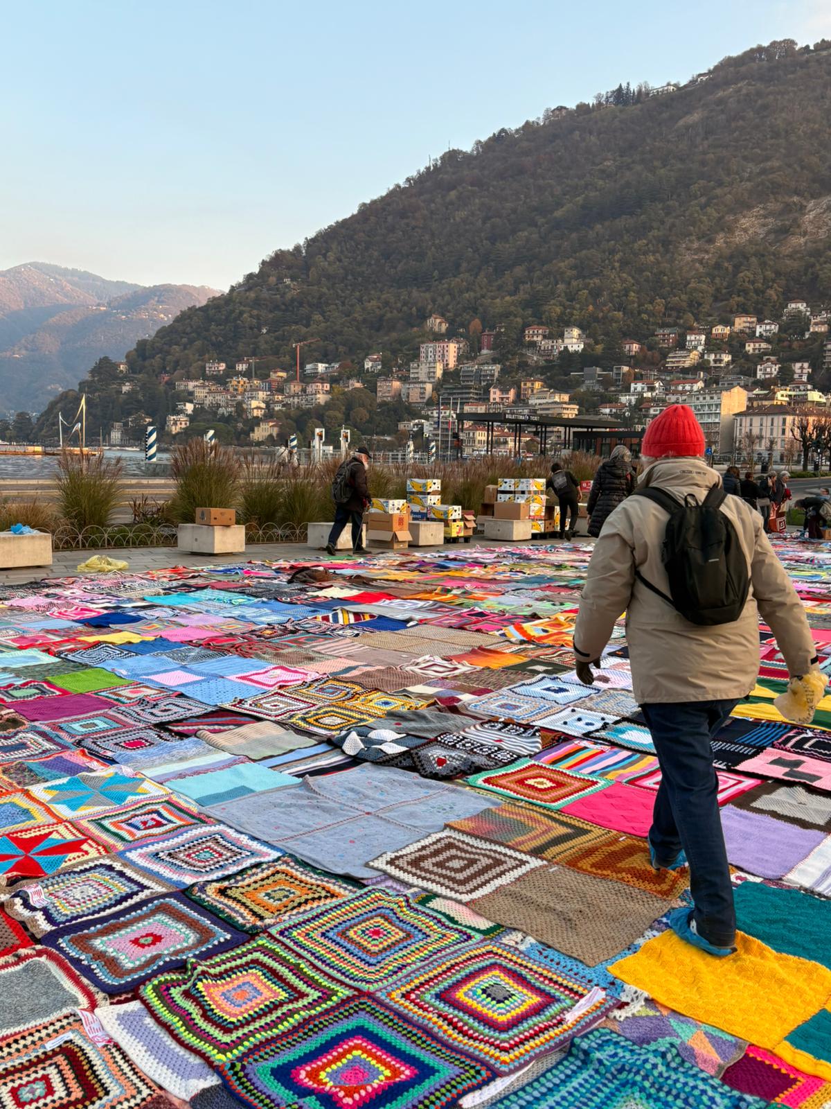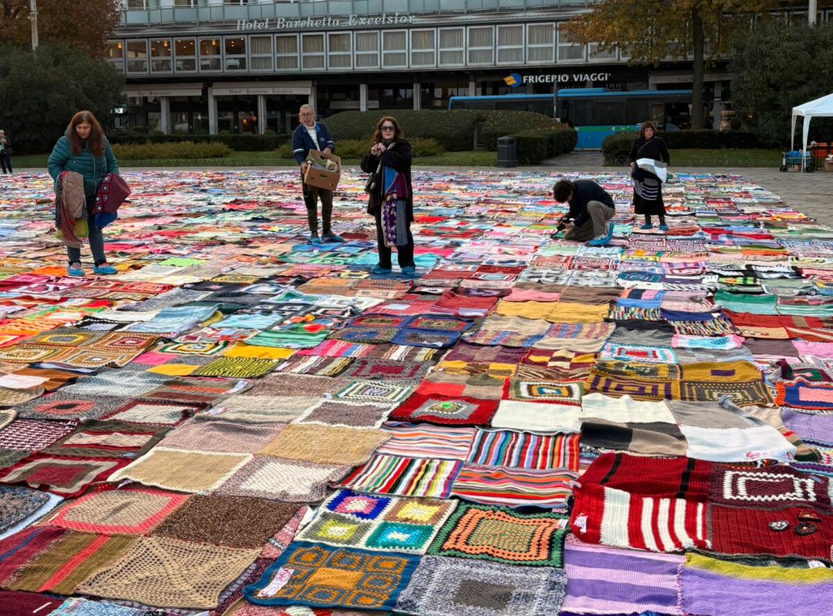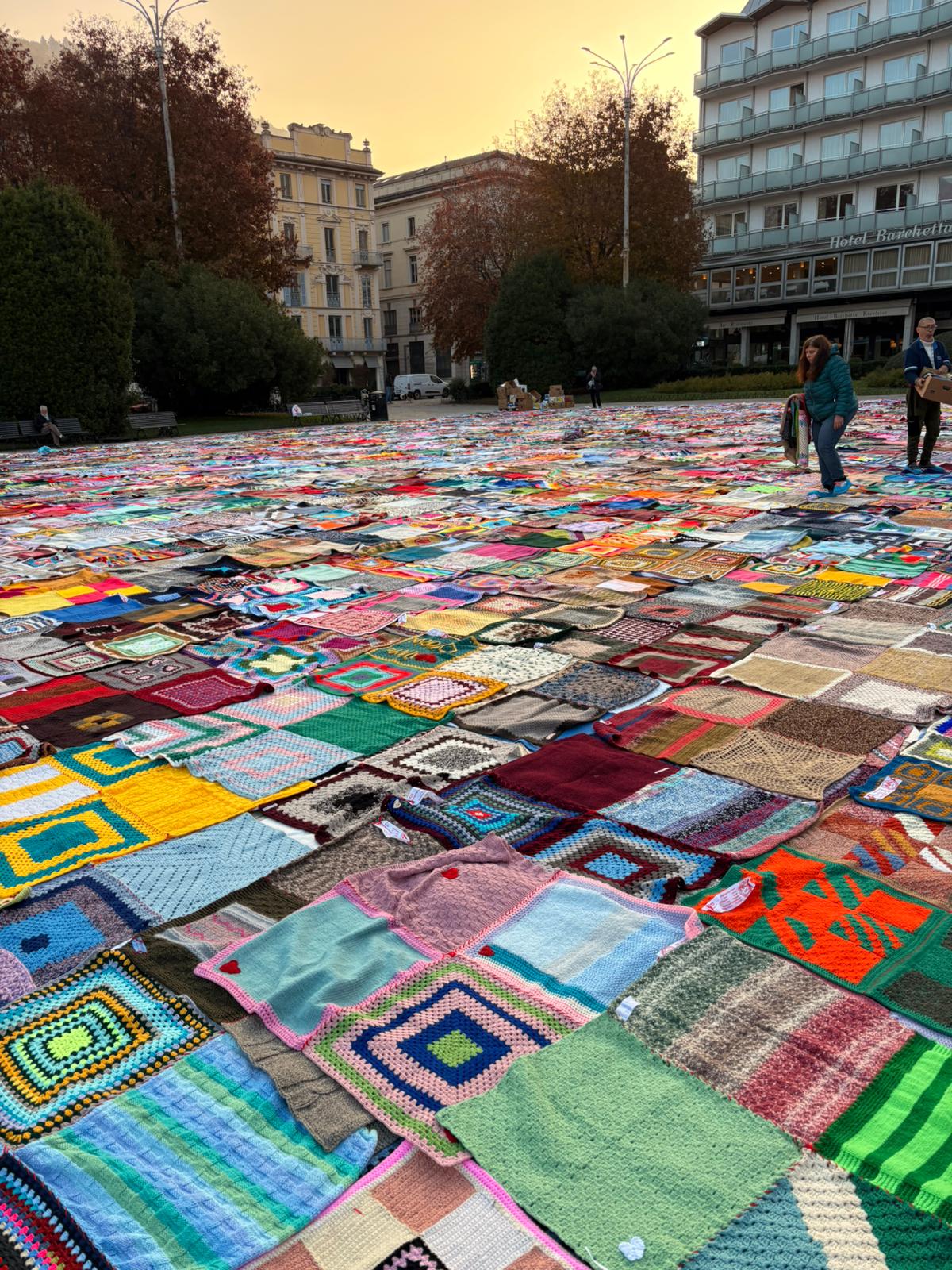 E subito in tantissimi sono stai attirati da questo insolito spettacolo. Le coperte sono state realizzate da mani di ogni età: donne, uomini, bambini, anziani e perfino persone con decadimento cognitivo, che, come ha detto Silvia Cantaluppi, presidente Acisjif – Protezione della Giovane – Associazione di Ponte Chiasso Odv: “da un gomitolo sono riusciti a creare un quadrato, contribuendo con un gesto semplice ma carico di significato”.