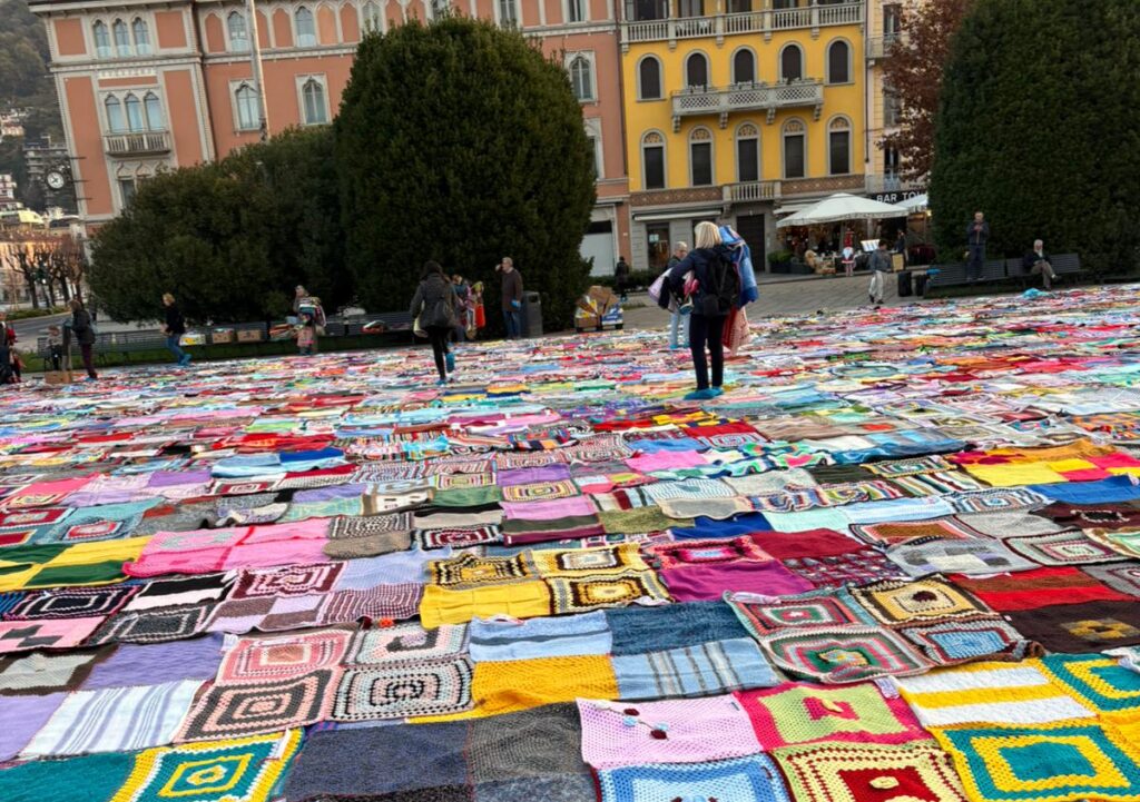 E subito in tantissimi sono stai attirati da questo insolito spettacolo. Le coperte sono state realizzate da mani di ogni età: donne, uomini, bambini, anziani e perfino persone con decadimento cognitivo, che, come ha detto Silvia Cantaluppi, presidente Acisjif – Protezione della Giovane – Associazione di Ponte Chiasso Odv: “da un gomitolo sono riusciti a creare un quadrato, contribuendo con un gesto semplice ma carico di significato”.