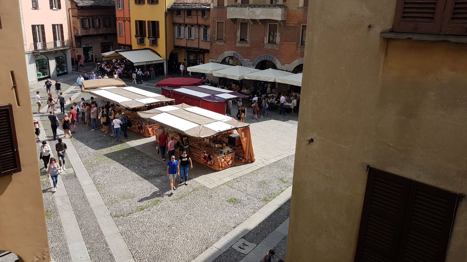 Nell’aria si respira ancora l’eco delle polemiche per il mercatino-flop della scorsa settimana in piazza Roma, ma questa domenica da piazza San Fedele arriva un’altra immagine piuttosto forte benché certamente saporita. Stamattina, infatti, passanti e residenti si sono trovati davanti a una “installazione” piuttosto inconsueta proprio davanti alla basilica.