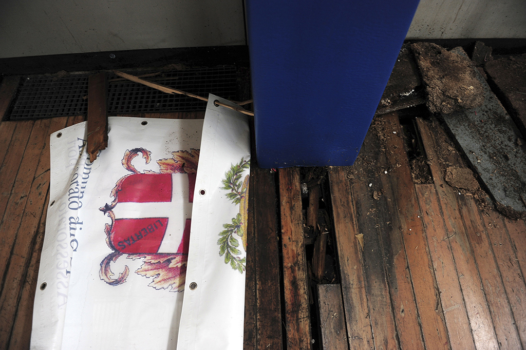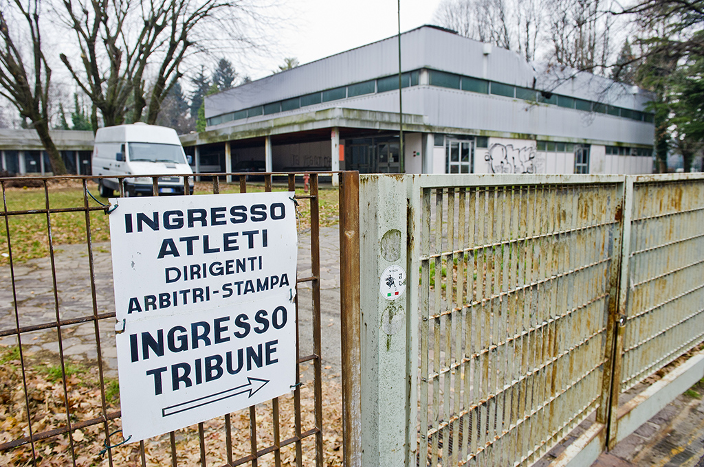 La casa dello sport comasco giace ora in uno stato di totale abbandono.