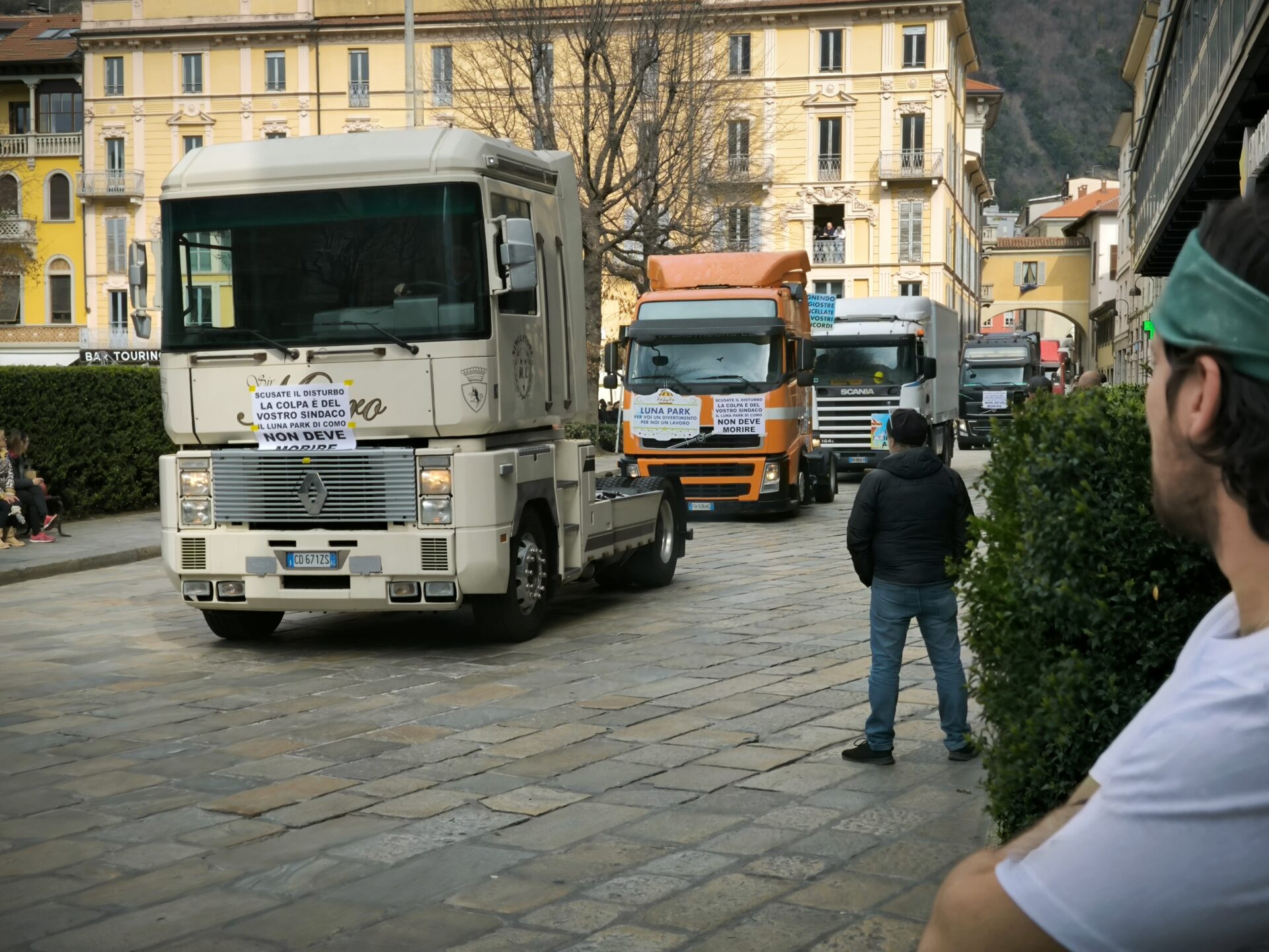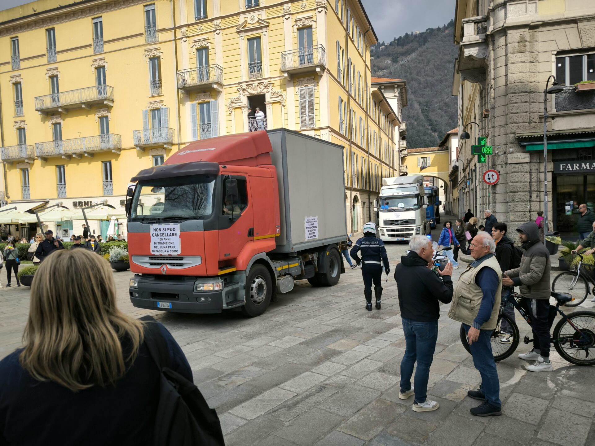 AGGIORNAMENTO (14.14) – Certo, l’effetto sperato è stato ottenuto, gli oltre 30 mezzi dei giostrai scesi in città per manifestare contro le decisioni del Comune sul Luna Park hanno avuto un imponente impatto sul traffico comasco (oltre che sulle orecchie dei cittadini visto l’ampio e frequente utilizzo dei maxi clacson). Rallentamenti sono stati registrati in tutte le arterie. Poco prima delle 13 una testa di ponte, sei mezzi, è arrivata in città per raggiungere piazza Cavour e mettersi in sosta. Dopo circa una ventina di minuti gli altri colleghi, una trentina, hanno acceso i motori e raggiunto la città bloccando gli automobilisti.