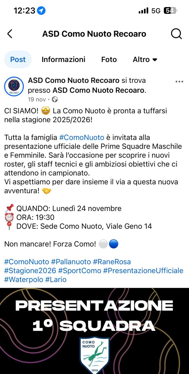 Abbiamo chiesto allo Staff Tecnico di proporre dei gruppi omogenei per l’eventuale collocazione presso queste strutture. Appena avremo le necessarie informazioni vi ricontatteremo. Comprendiamo che per le famiglie sarà molto difficile gestire questa situazione, ma è l’unica soluzione disponibile. Ad ulteriore conferma del nostro impegno e della forte collaborazione con In Sport, i nostri atleti sono invitati a partecipare al collegiale natalizio di Biella che si terrà il 27, 28 e 29 dicembre. Infine, è doveroso informare che il Consiglio Direttivo di Como Nuoto ha deliberato di agire in sede giudiziaria per tutelare l’onorabilità dell’Associazione e dei suoi dirigenti.