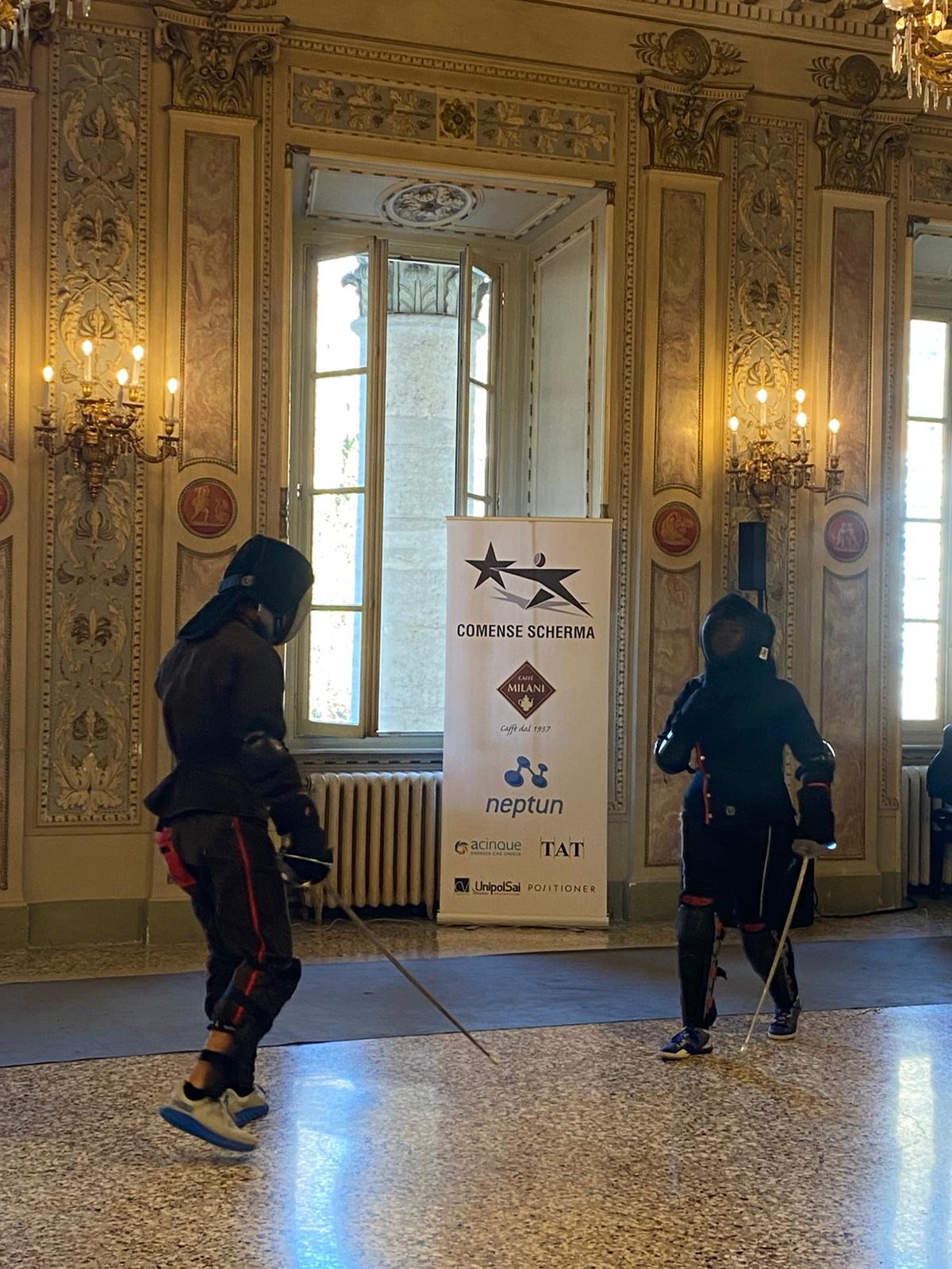 In Sala Bianca ci son scherma e scherma storica grazie a Comense Scherma: in pedana tra le ore 10.00 e 12.30 Torneo Scherma Olimpica, alle ore 13.30 si potrà assistere ad un’esibizione di Scherma Storica.