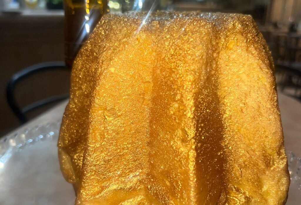 Di lui abbiamo parlato tempo fa per il panettone d’oro “impastato in parte a mano con champagne, scaglie d’oro a 23 carati e chocoviar – spiega – Il costo è di 75 euro al chilo per quello colorato d’oro con le scaglie all’interno e 120 euro al chilo per quello invece ricoperto con foglie d’oro”.