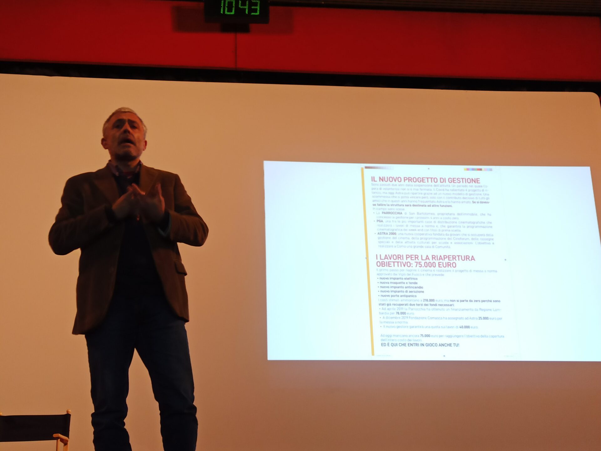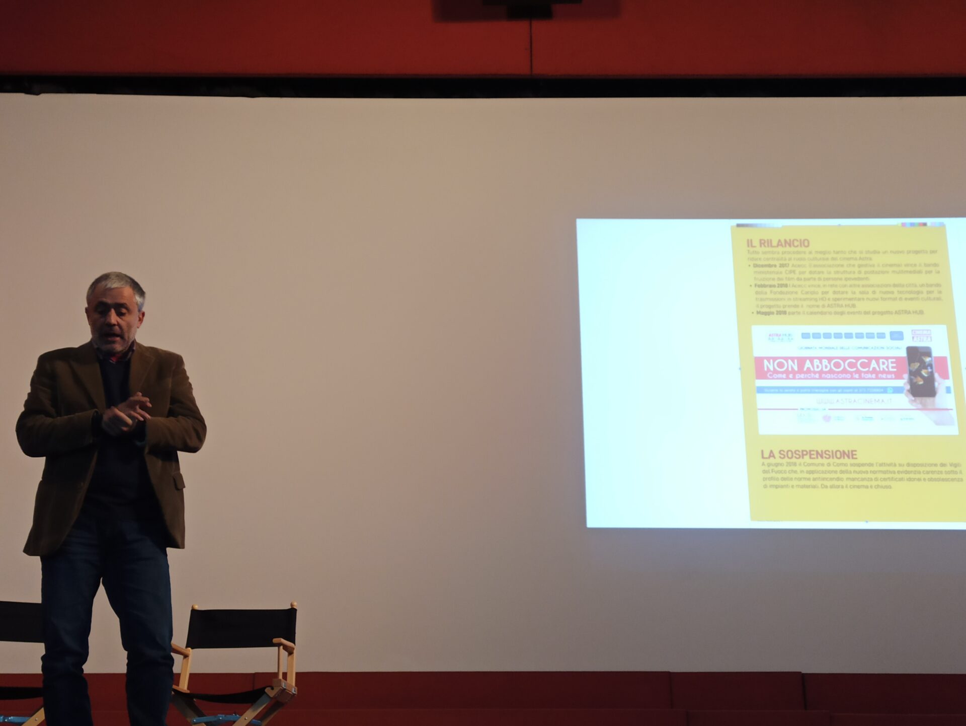 “L’Astra è stato fondato nel 1968 da 650 comaschi – ha spiegato Michele Luppi, giornalista del Settimanale della Diocesi che ha introdotto l’incontro – oggi vogliamo provare a restituire il cinema alla città unendo forze storiche e giovani in questa che non è solo una raccolta fondi, ma anche un progetto sostenibile di gestione futura”.