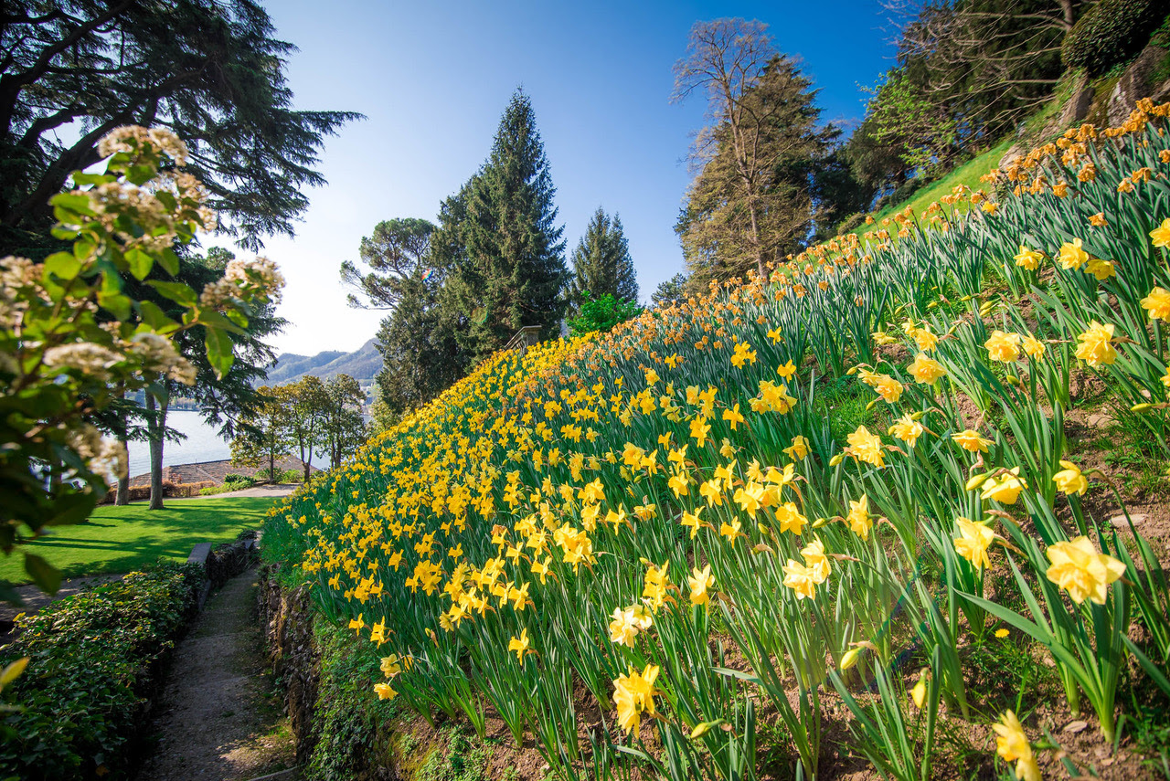 Sentieri panoramici attraversano il Parco, offrendo scorci incatevoli sul primo bacino del Lago di Como e sulla città, e collegano la Villa del Grumello alle vicine Ville Olmo e Villa Sucota. Questi percorsi, intitolati a personaggi illustri quali Foscolo, Giovio e Celesia, testimoni della vivace vita culturale che ha animato la Villa nel tempo, rappresentano oggi un itinerario culturale e naturalistico di grande suggestione.
