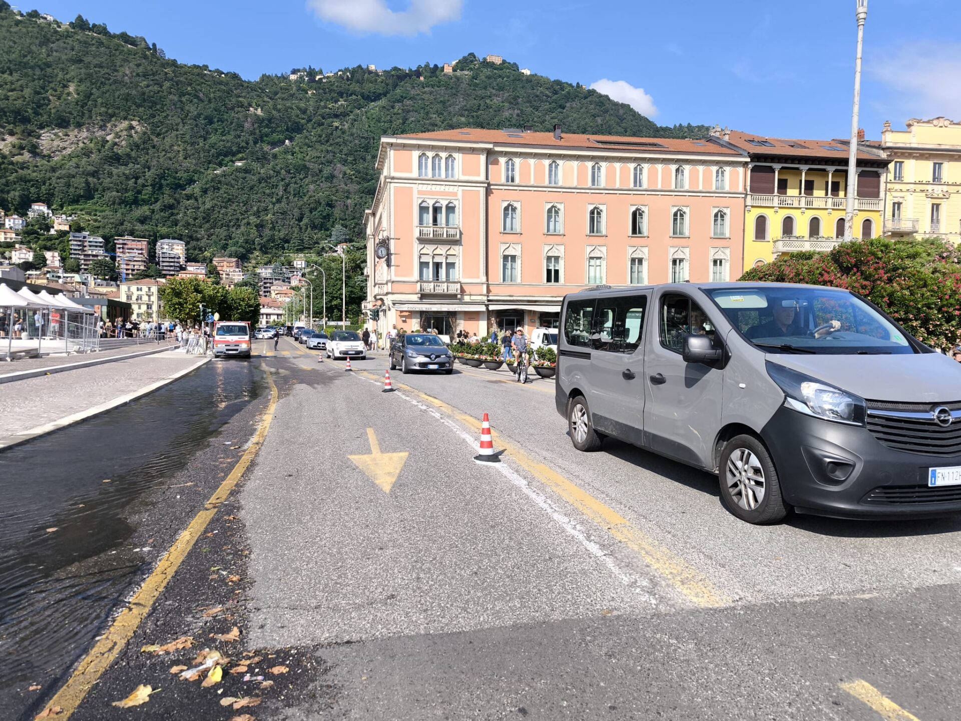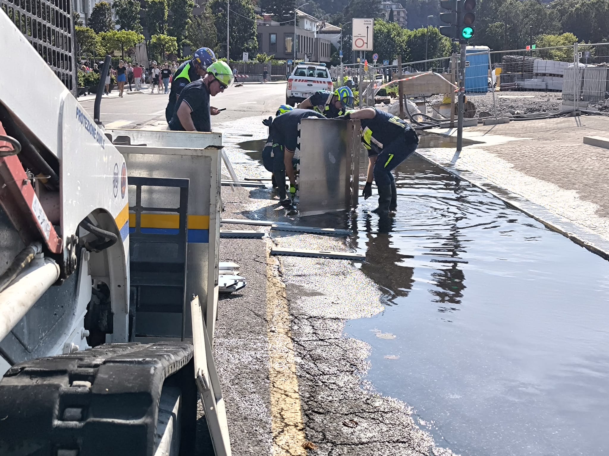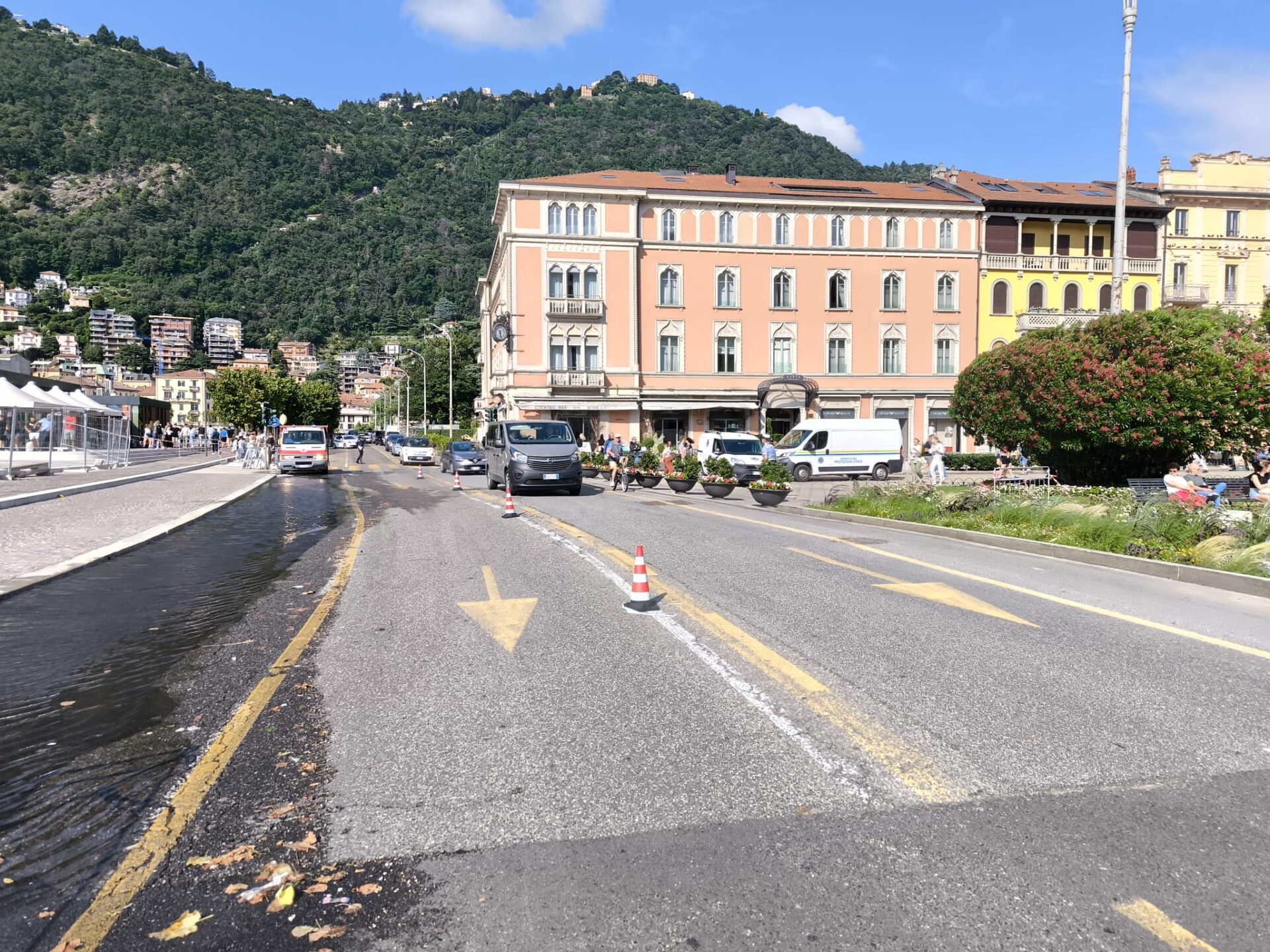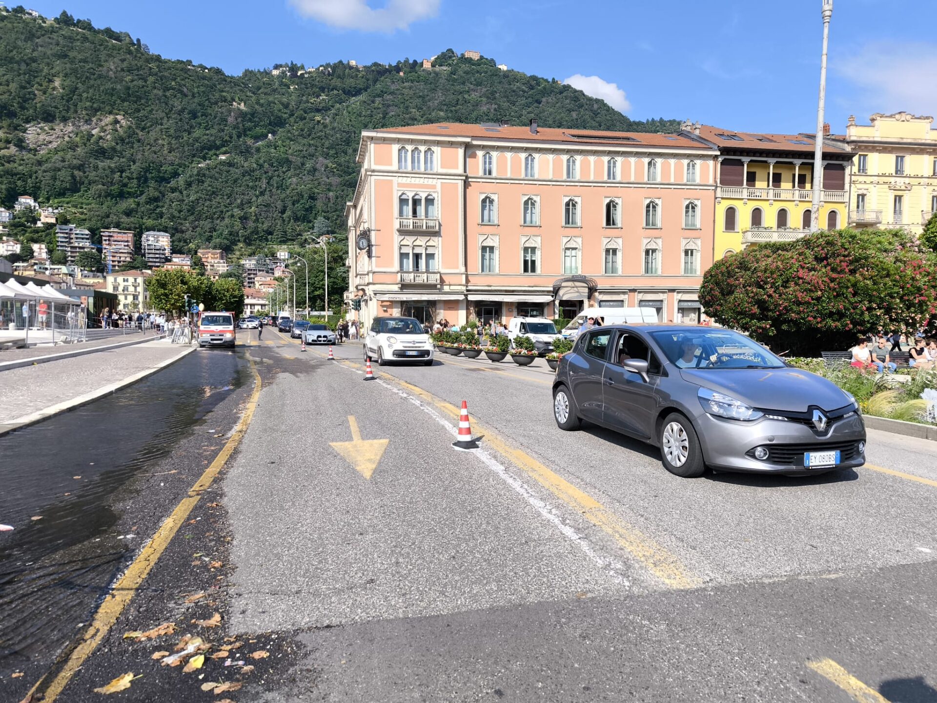 Il problema dunque è per i pedoni, infatti è stato temporaneamente chiuso, dalla Polizia locale presente sul posto, il passaggio al semaforo davanti all’Hotel Suisse. “Monteremo la passerella come l’ultima volta – spiega, contattato, l’assessore Michele Cappelletti – in ogni caso trattandosi della corsia di cantiere non ci sono particolari disagi. Poi, una volta finiti i lavori delle paratie e completati gli allacciamenti il problema non si ripresenterà”.