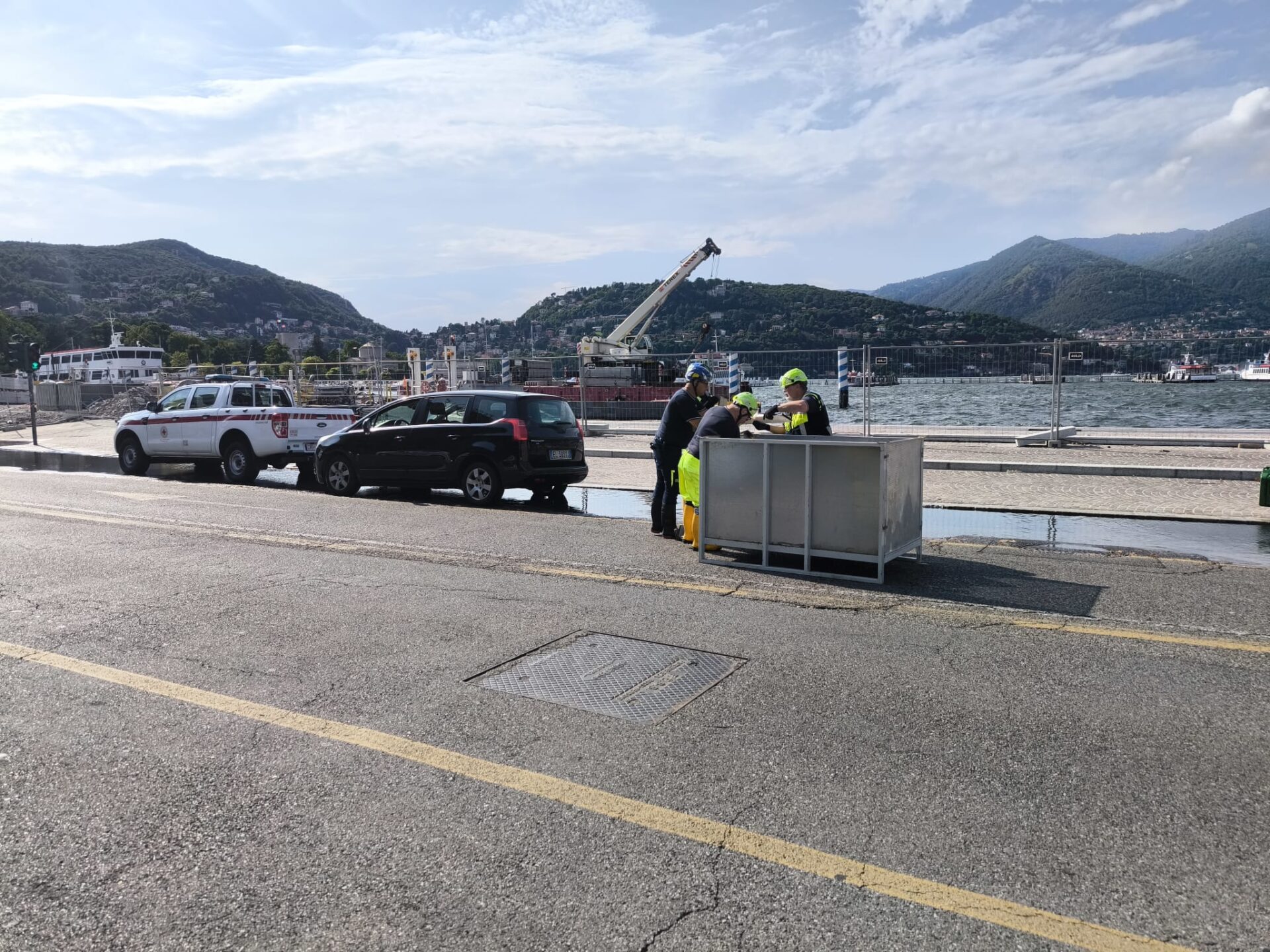 Dopo le abbondanti piogge delle scorse ore, peraltro potrebbero arrivarne altre (qui previsioni e racconti), l’acqua delle valli e dei monti sta facendo crescere assai velocemente il Lario: alle 16 l’afflusso era di 1.672,5 metri al secondo, il deflusso di 440,4 mentre il livello del lago si attestava a 108.6 centimetri sullo zero idrometrico, quando la quota di esondazione è a 120. Insomma, assai facile un’esondazione. Per questo il Comune, con l’assessore alla Protezione Civile Michele Cappelletti, ha deciso di far arrivare idrovora e paratie mobili.