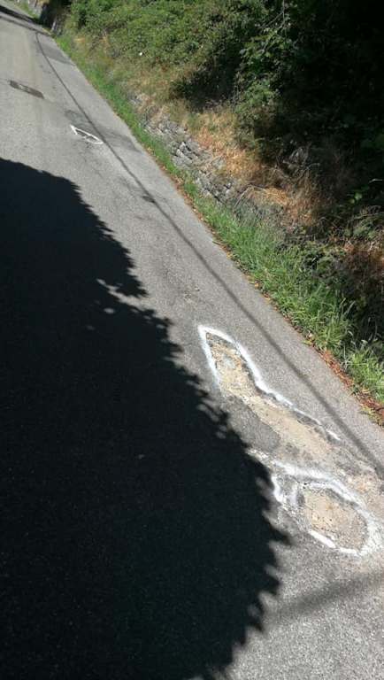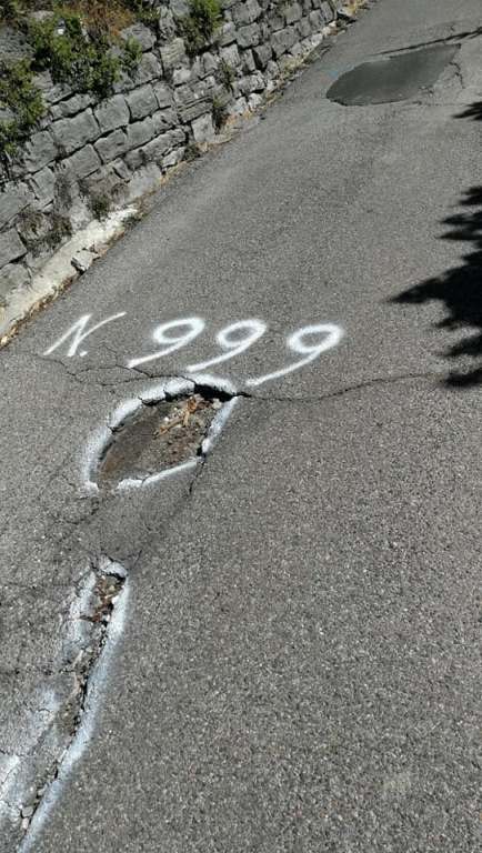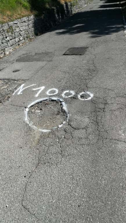 Oggi è il turno dell’ignoto eroe che, spray alla mano, si è messo a segnalare e numerare le buche che martoriano la strada che da Cernobbio sale verso il monte Bisbino.