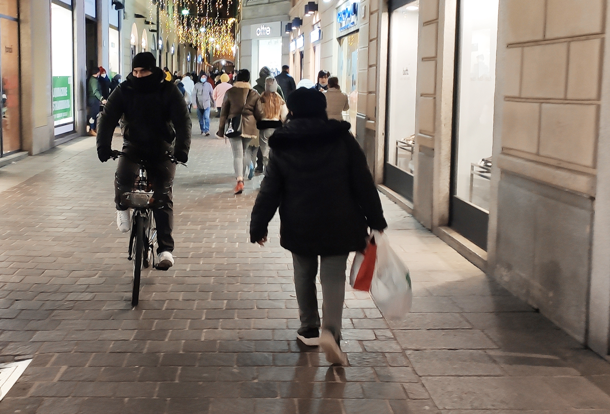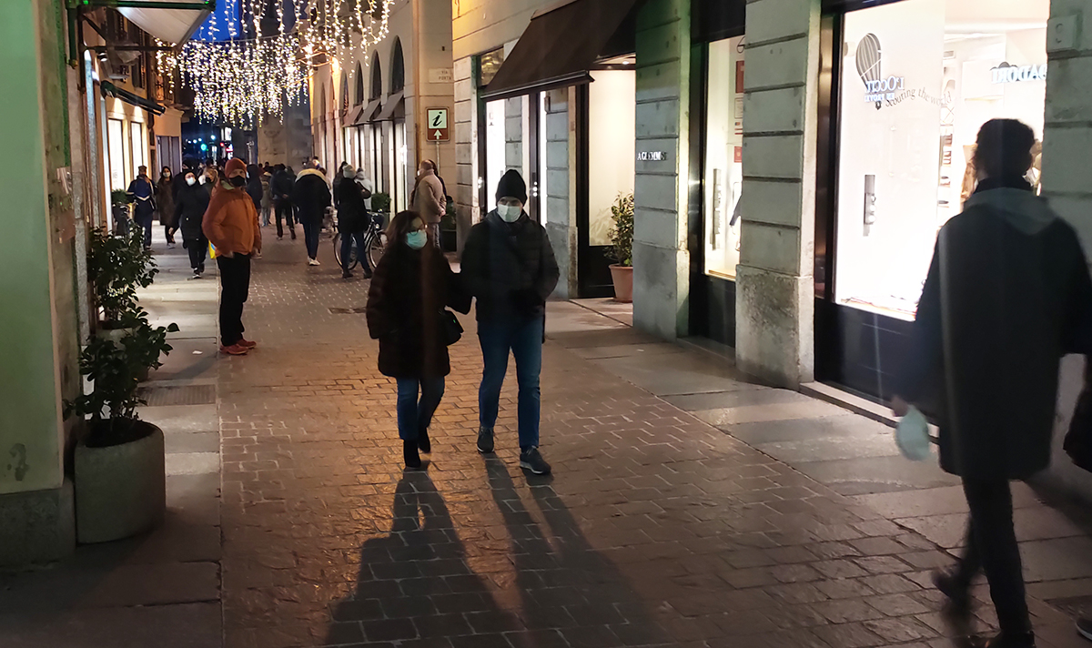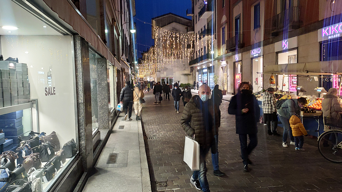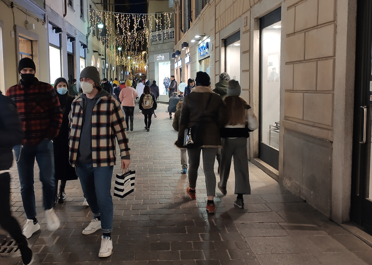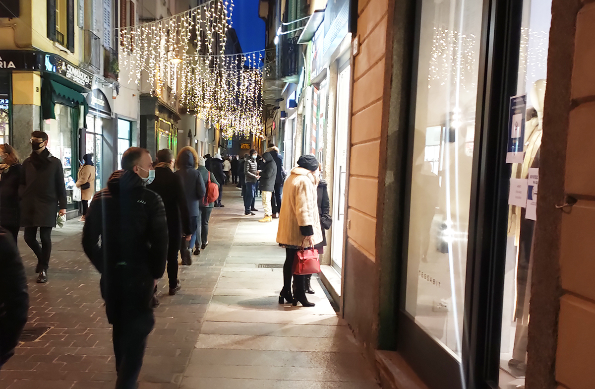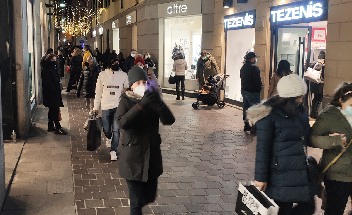 Vetrine accese, qualche coda e i negozi abbastanza pieni.