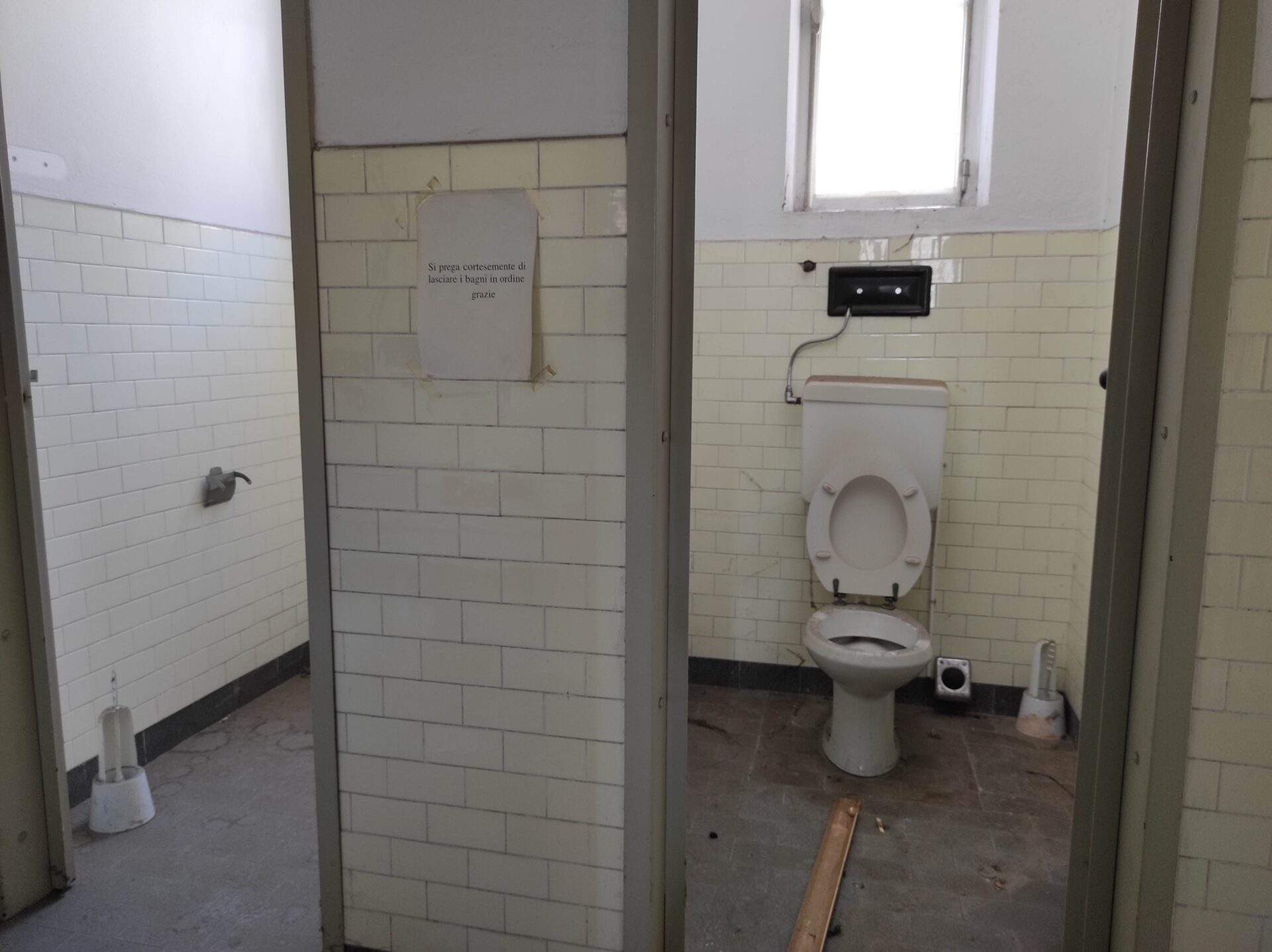 Eppure quegli spazi tanto amati dai giovani non hanno mai riaperto e tutta la strumentazione dal 2013 prende polvere e diventa vecchia rimanendo inutilizzata nella struttura comunale di via Colonna che, bisogna sottolinearlo, non versa in buone condizioni. Listoni di parquet da posizionare e sedie accatastate, divani malconci abbandonati, armadi vuoti, finestre e porte aperte, infiltrazioni di umidità ovunque. E quel cartello che sembra quasi una presa in giro: “Si prega cortesemente di lasciare i bagni in ordine, grazie”. Mentre tutto “crolla”, resta la cortesia di facciata.